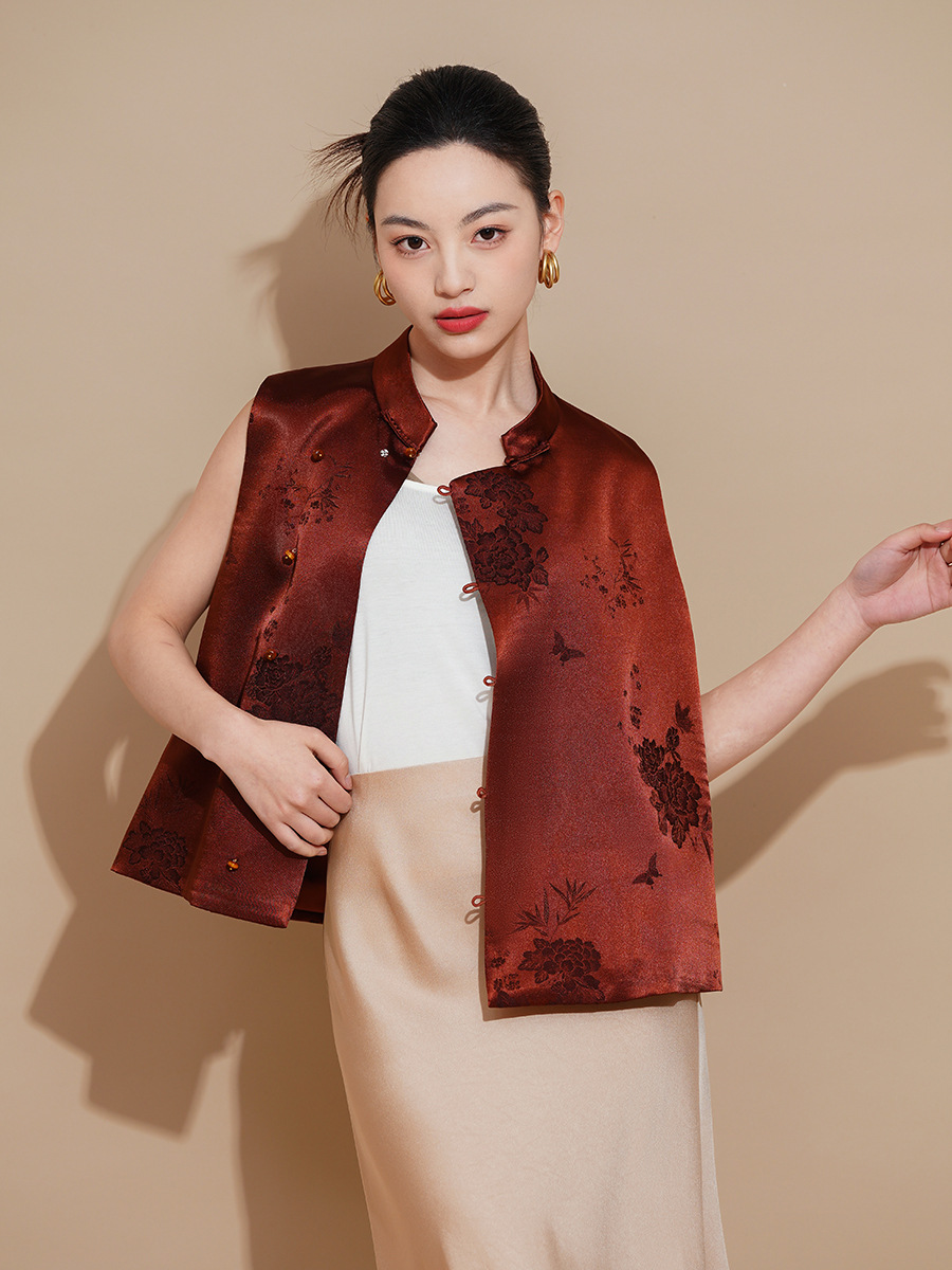 봄과 여름 새로운 중국 어머니 옷 여성 국가 스타일 청삼 조끼 여성 패션 연령 감소 카디건 수직 칼라 재킷스토어 가기