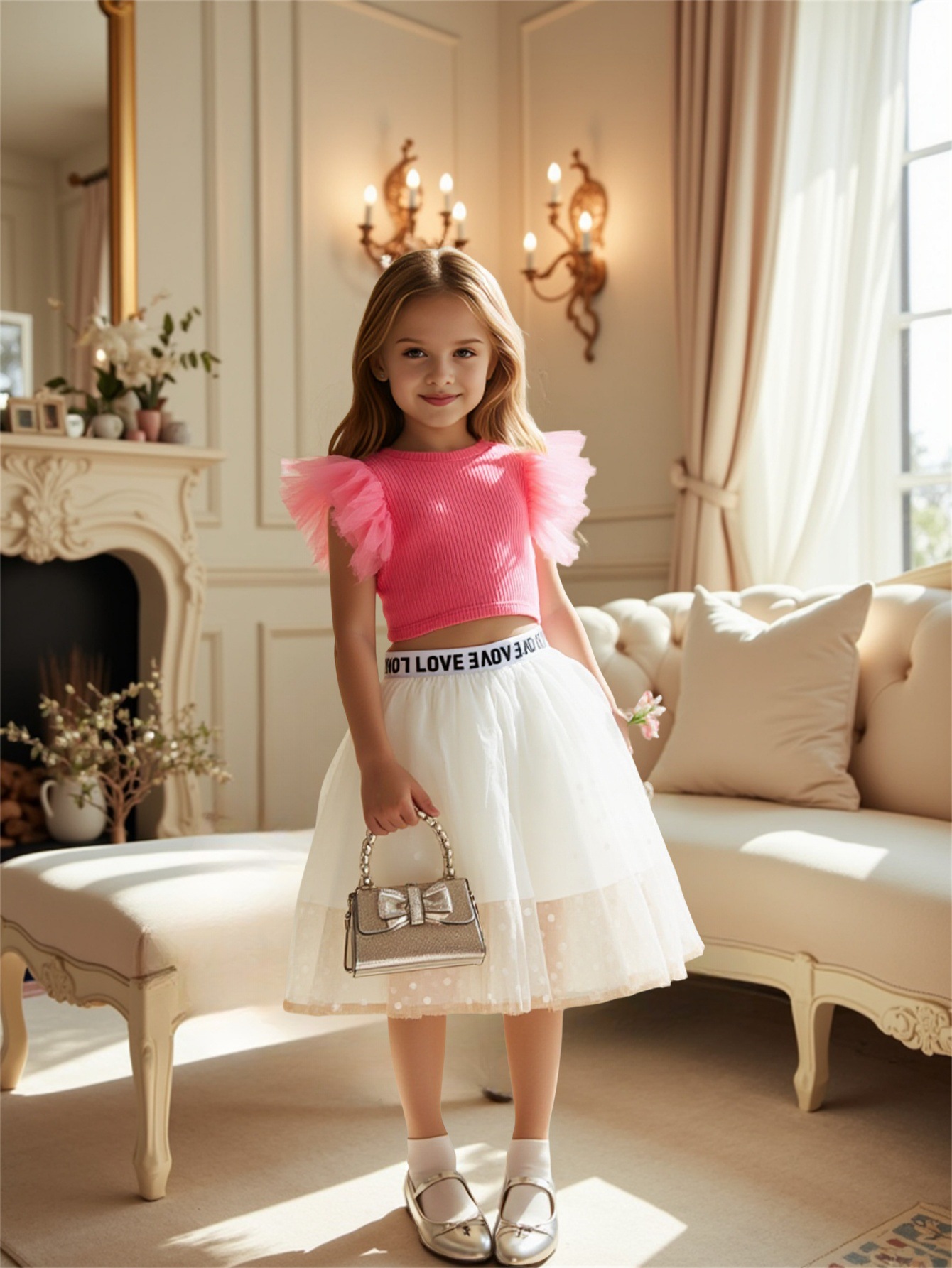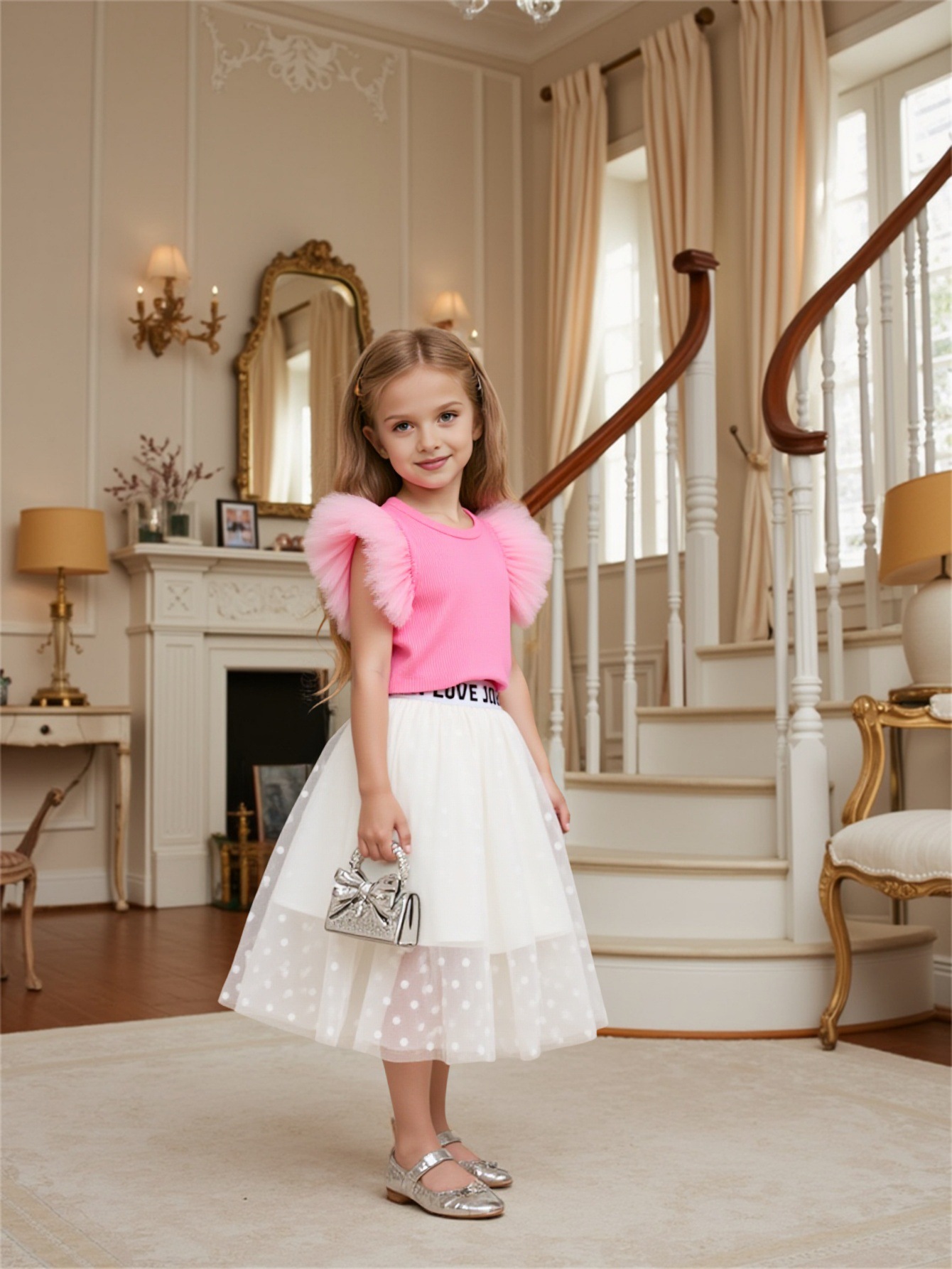 2025 여름 소녀 메쉬 짧은 치마 정장 소녀 달콤한 짧은 치마 정장 어린이 소녀 짧은 치마 정장