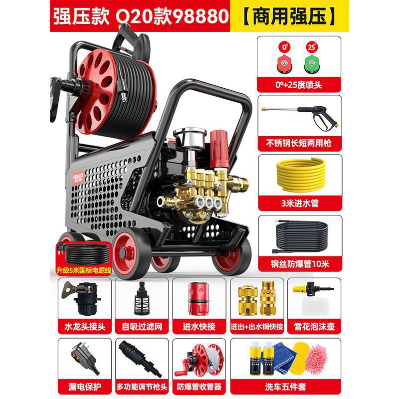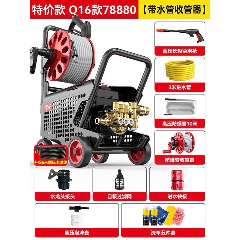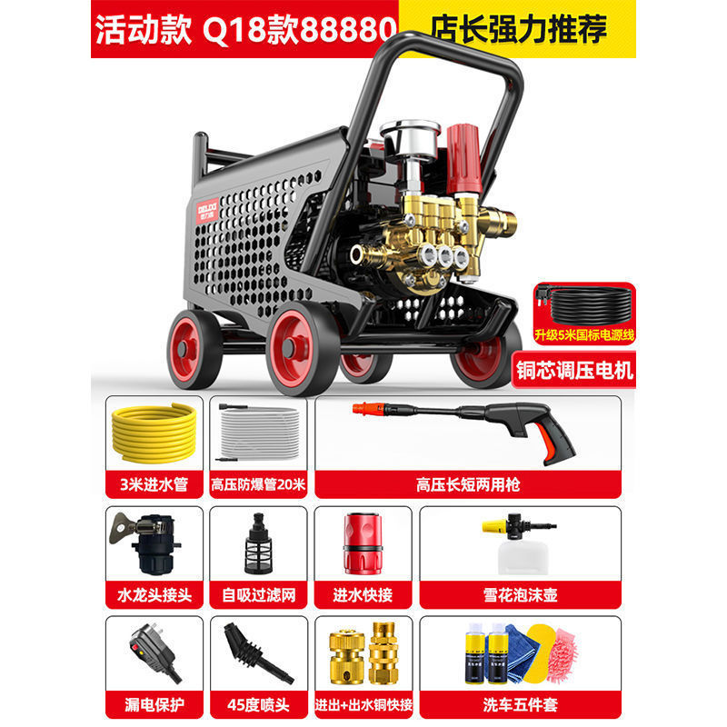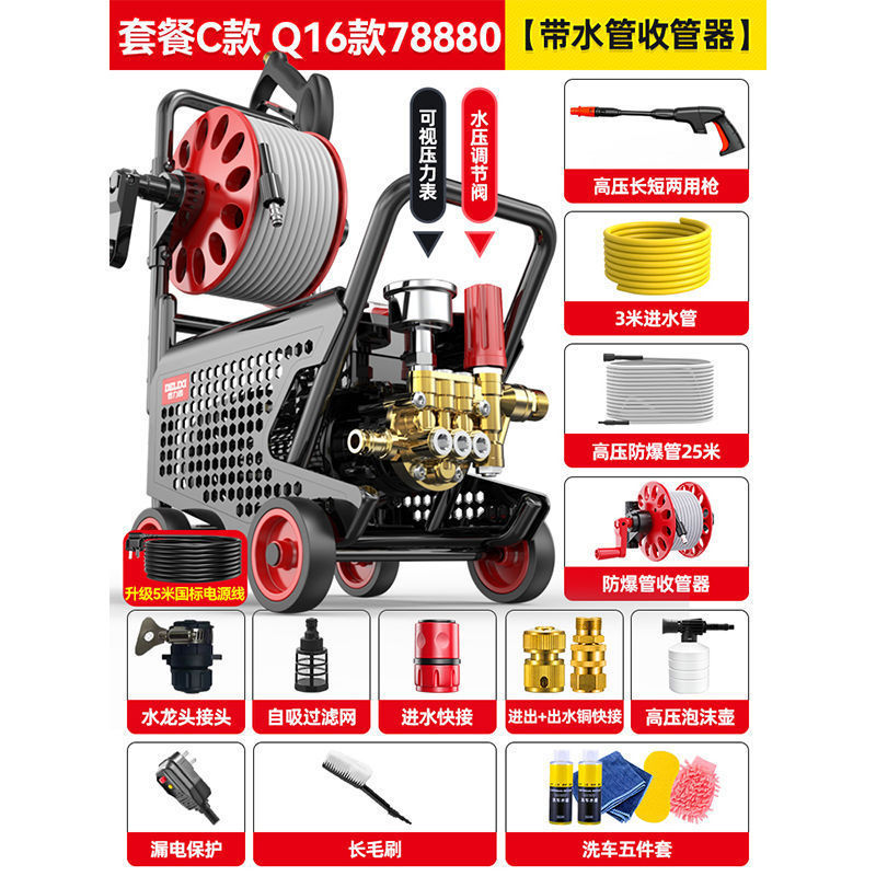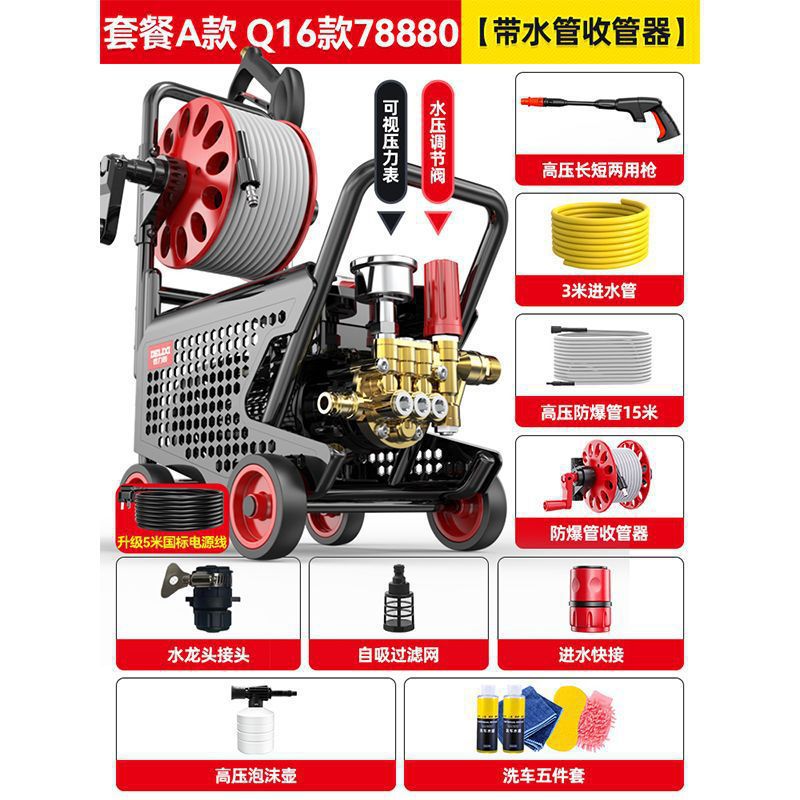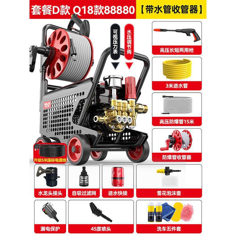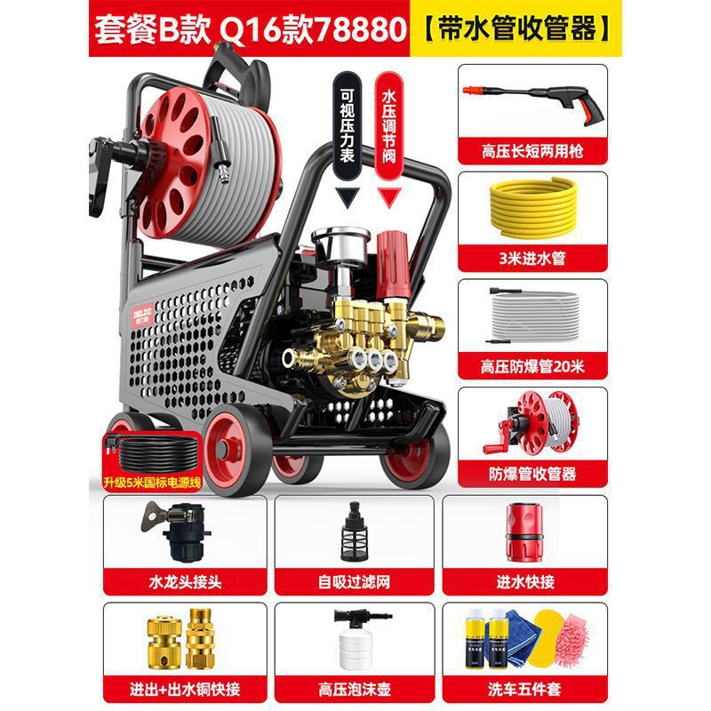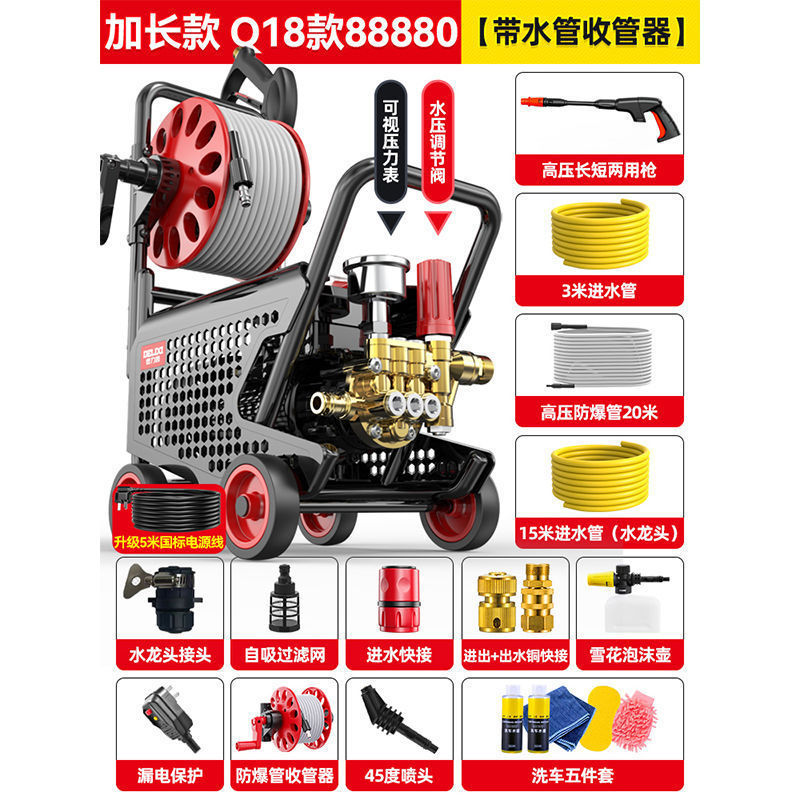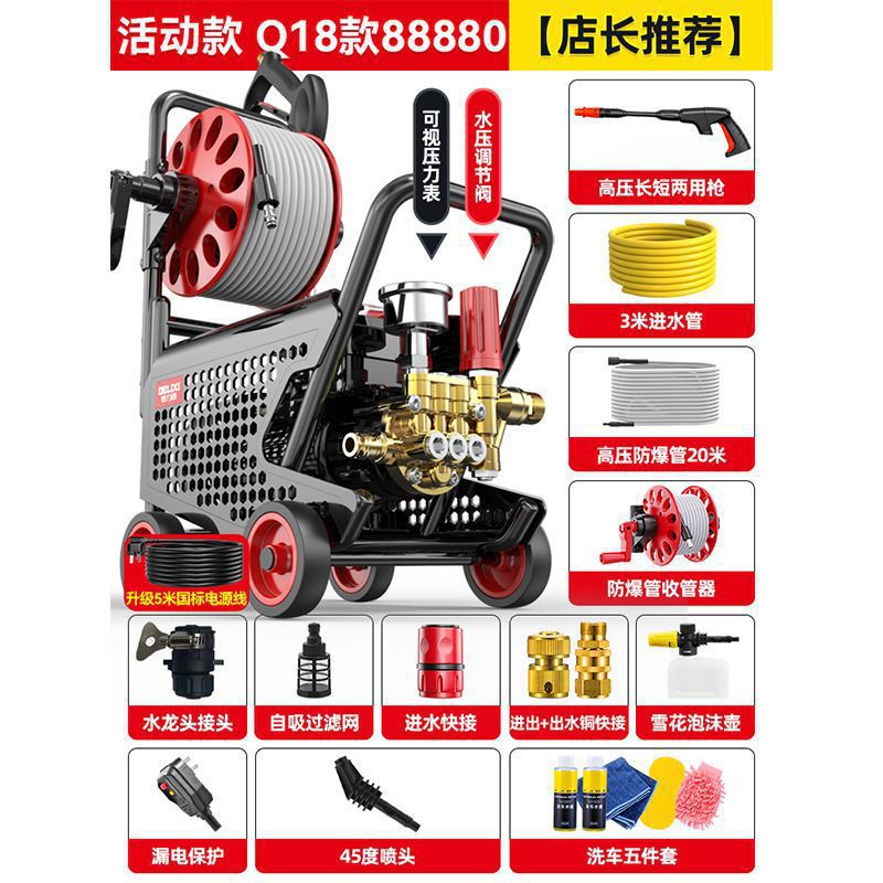 Delixi 자동차 세탁기 고압 물 펌프 가정용 220V 고출력 물 총 자동차 세척 지상 총 다른 순수한 구리 yuehui