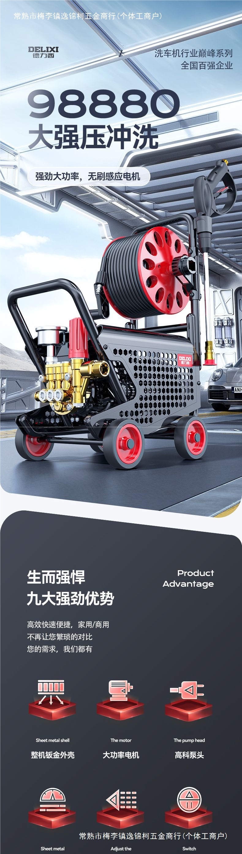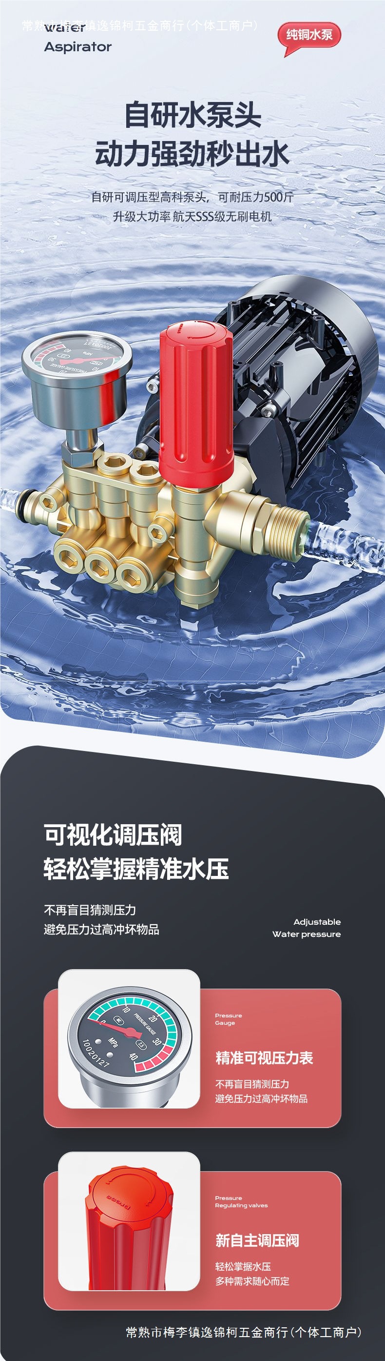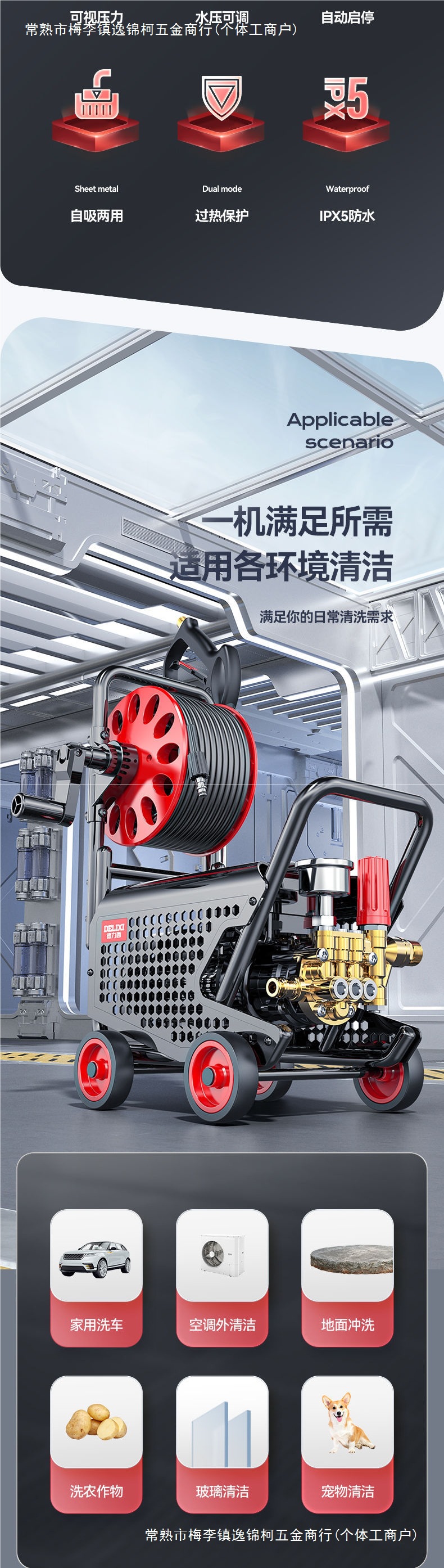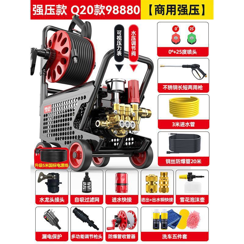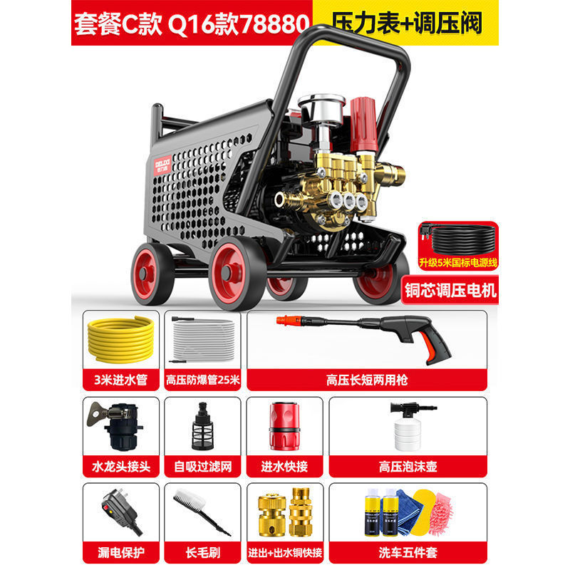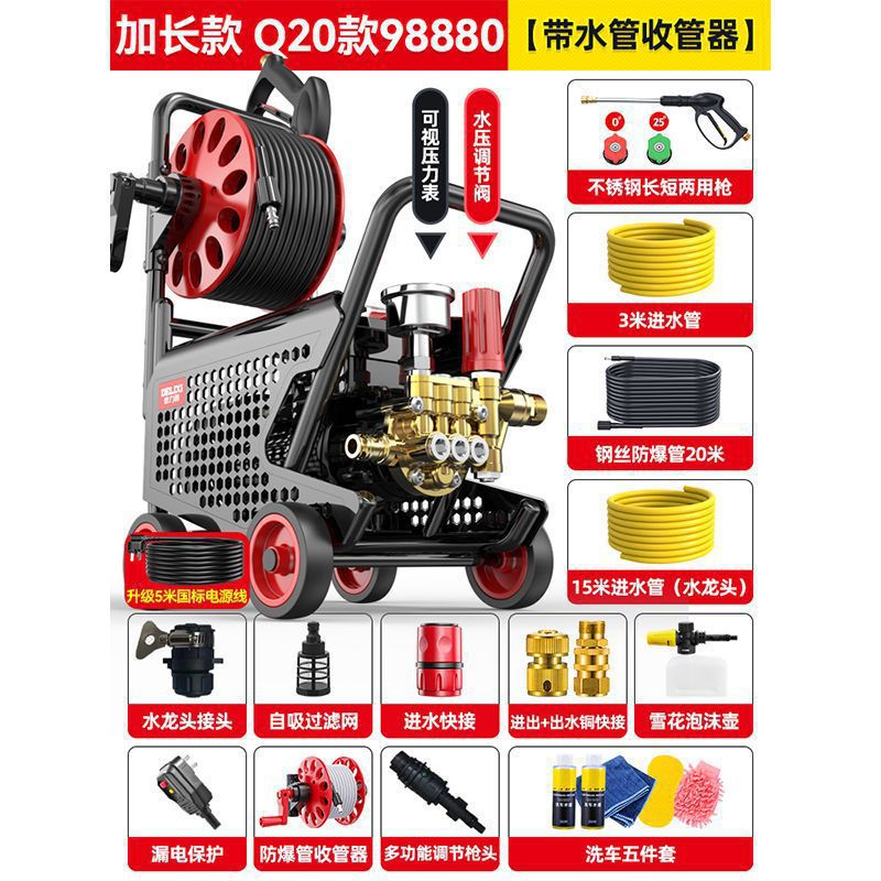 Delixi 자동차 세탁기 고압 물 펌프 가정용 220V 고출력 물 총 자동차 세척 지상 총 다른 순수한 구리 yuehui