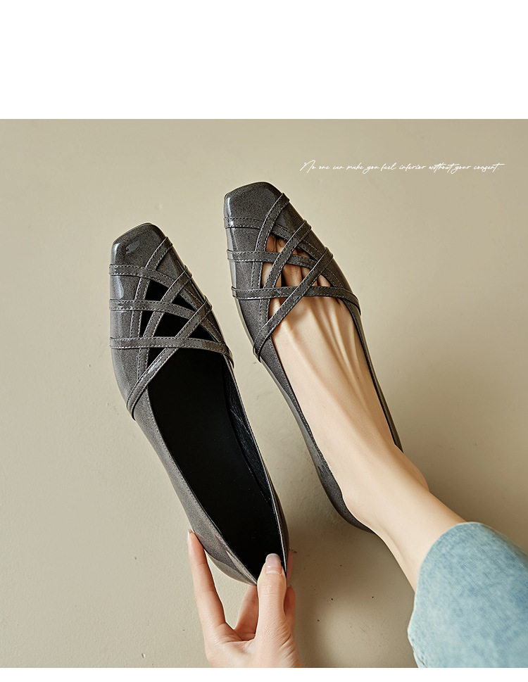 평평한 밑창 높이 증가 단일 레이어 신발 여성의 2025 봄 새로운 얕은 컷 미드 힐 신발 속이 빈 탑 레이어 소 가죽 여성 신발 도매