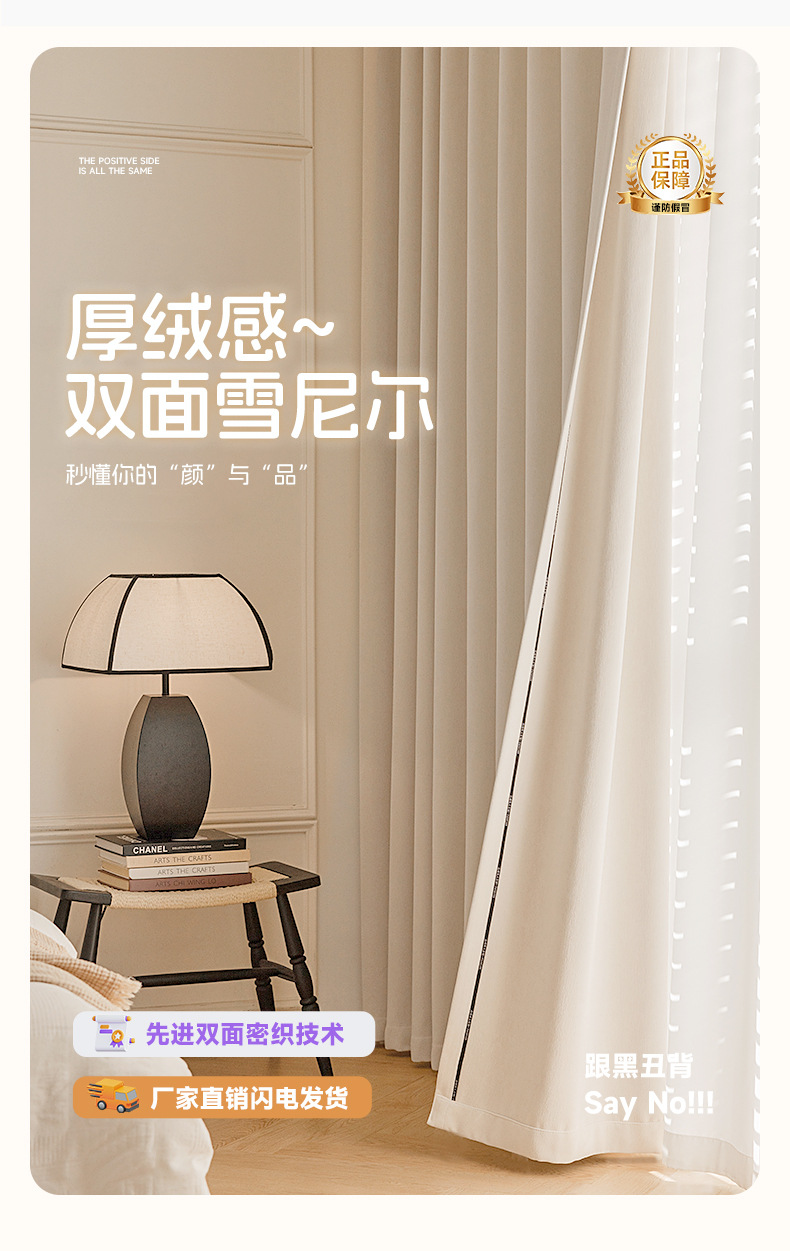 양면 체닐 풀 블랙 아웃 커튼 마무리 침실 고급 센스 크림 스타일 풀 하우스 커스텀 소흥 Keqiao 커튼