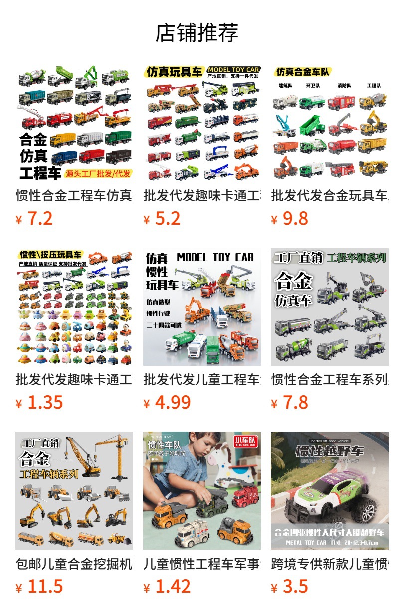 청하이 완구 도매 재미 만화 엔지니어링 차량 파기 드롭 저항하는 소년 및 소녀 어린이 장난감 관성 차량스토어 가기