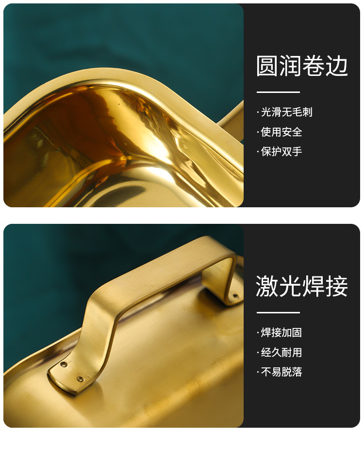 한국식 스테인레스 스틸 생선 팬 황금 직사각형 평면 바닥 팬 바이노럴 베이킹 팬 트레이 유도 밥솥 오븐