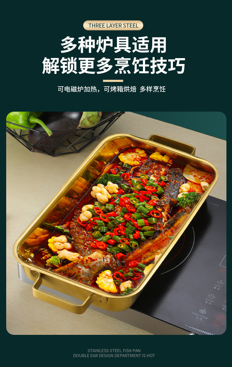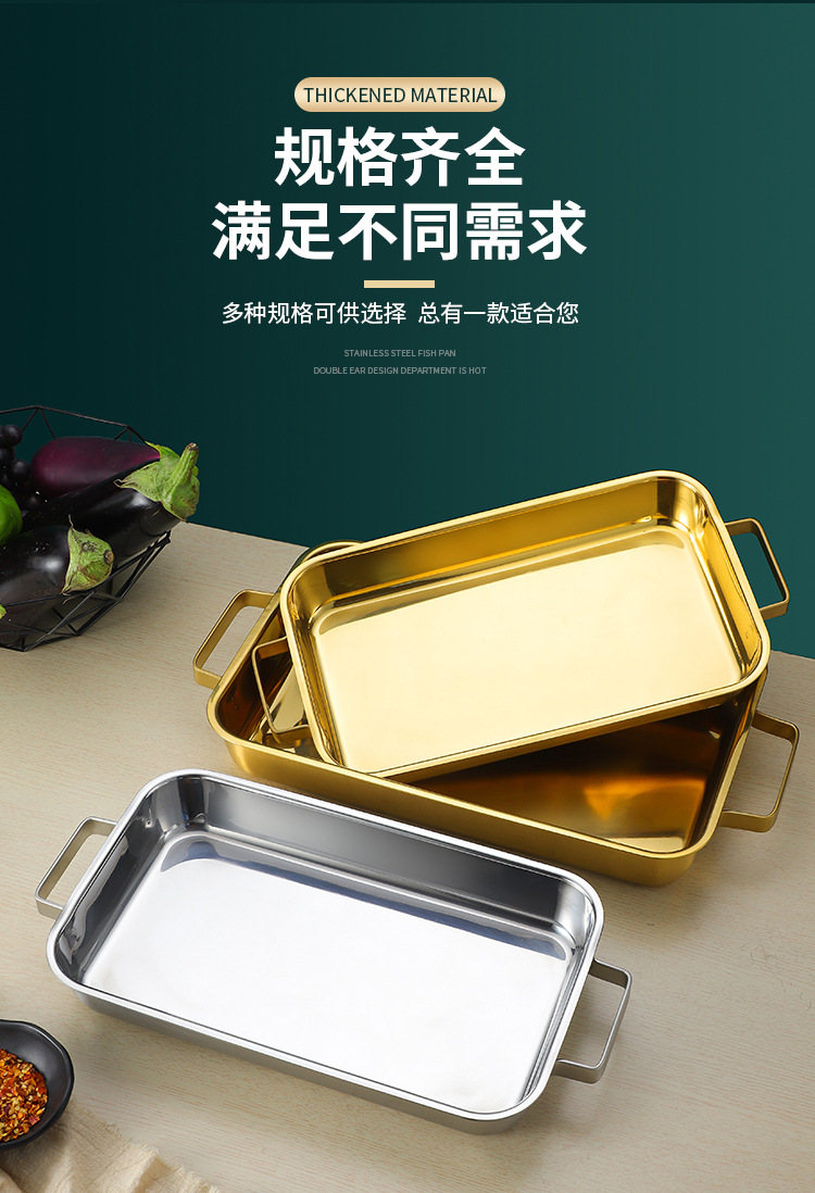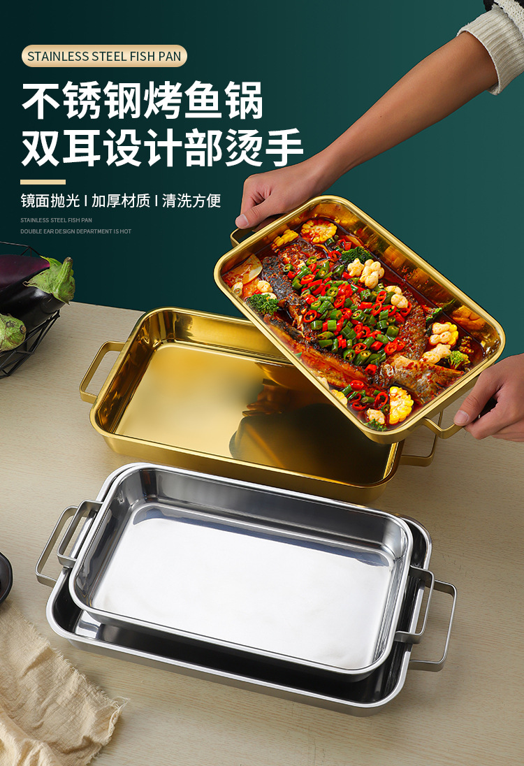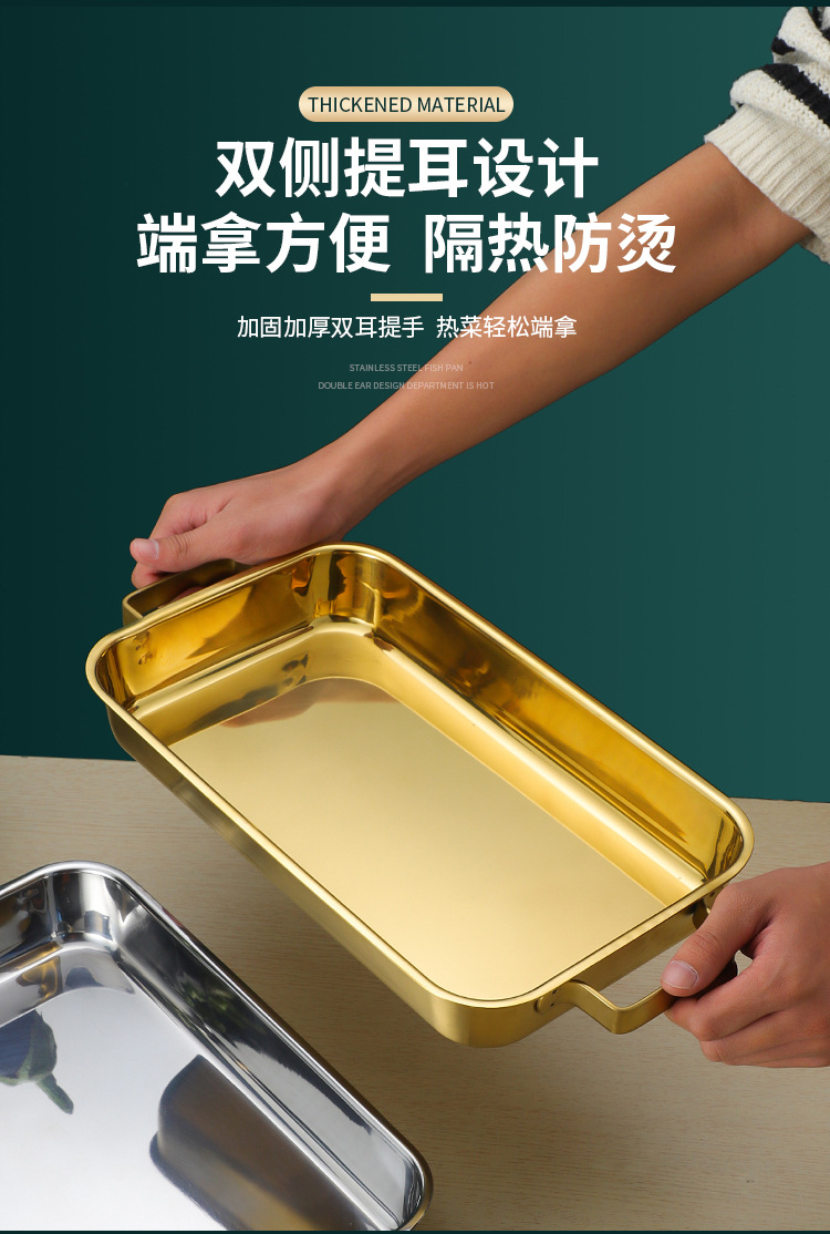 한국식 스테인레스 스틸 생선 팬 황금 직사각형 평면 바닥 팬 바이노럴 베이킹 팬 트레이 유도 밥솥 오븐스토어 가기