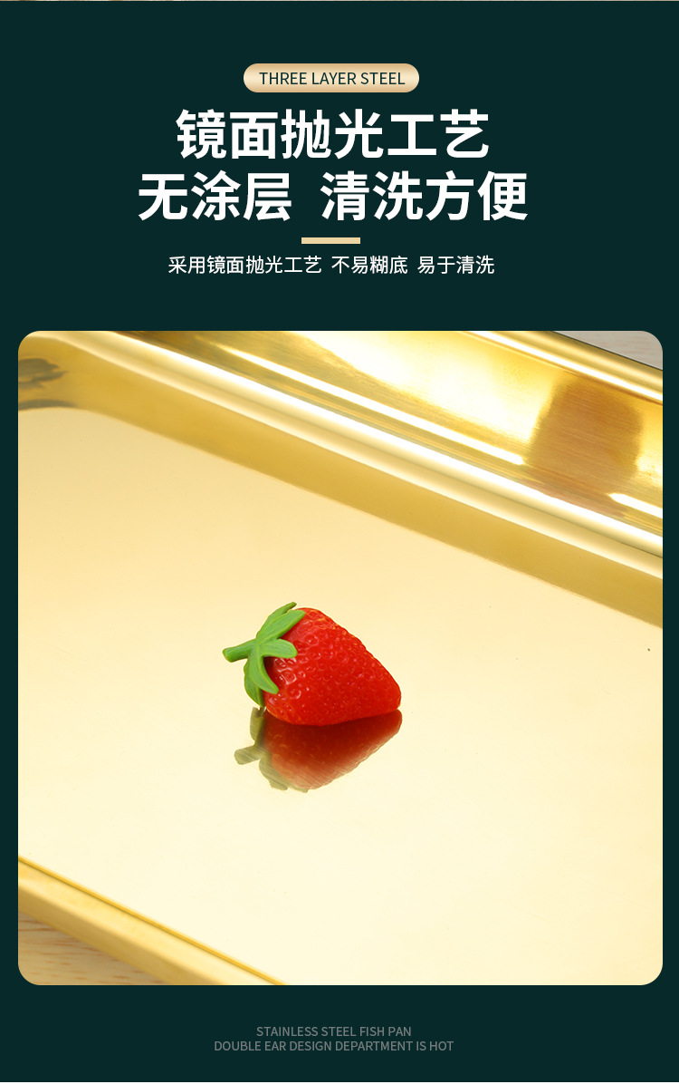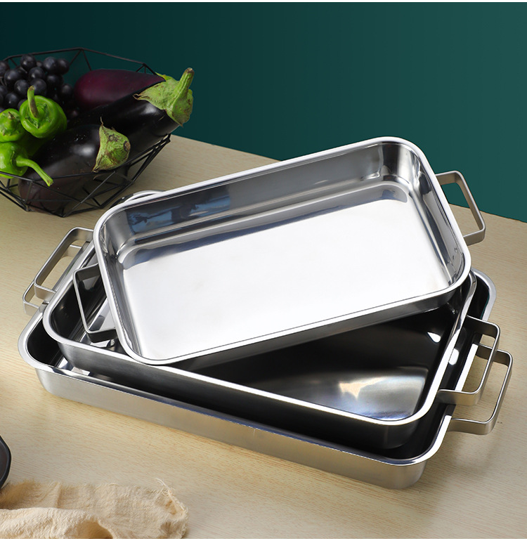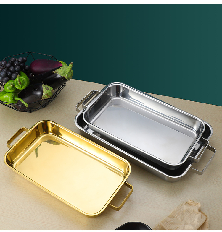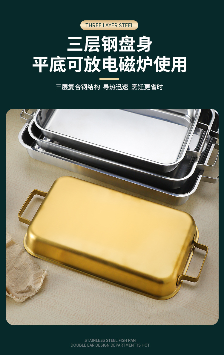 한국식 스테인레스 스틸 생선 팬 황금 직사각형 평면 바닥 팬 바이노럴 베이킹 팬 트레이 유도 밥솥 오븐스토어 가기