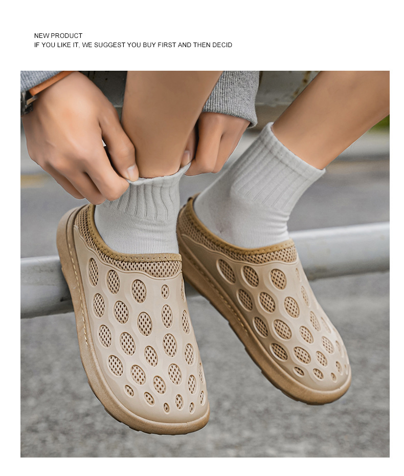메시 신발 남자의 새로운 여름 가정 외부 착용 반 슬리퍼 신발 바오 터우 비치 홀 신발 신발 샌들 및 슬리퍼