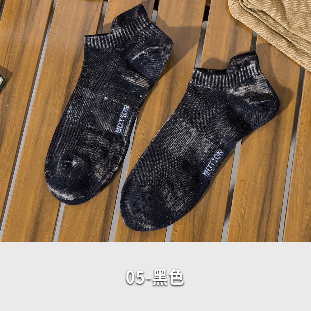 봄과 여름 새로운 면 양말 남성용 보트 양말 오래 된 툴링 스타일 코튼 양말 땀 흡수성 여름 양말 여성용 짧은 튜브 넥타이 염색 양말