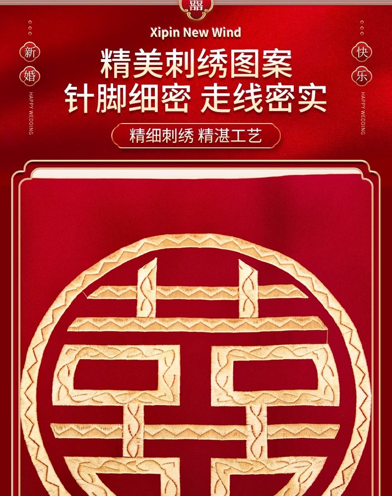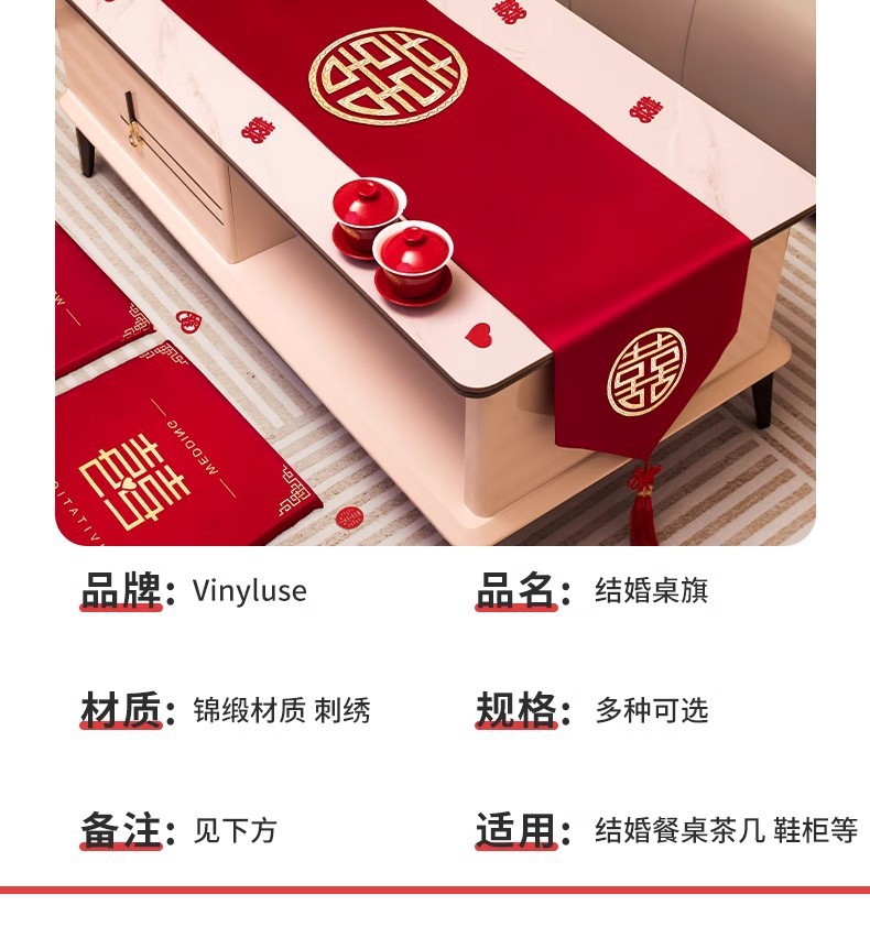 웨딩 타블렛 레드 해피 자수 테이블 플래그 커피 테이블 테이블 장식품 웨딩 룸 장식 거실 웨딩 약혼 장식