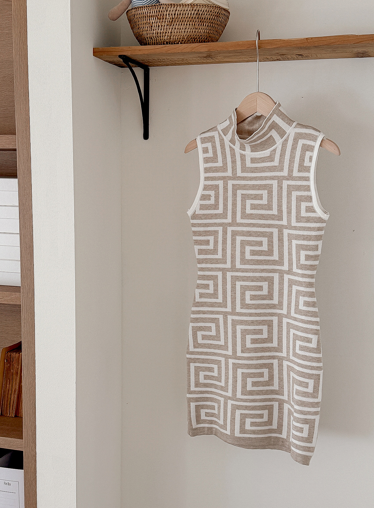 여름 2025 새로운 일본과 한국 스타일 하프 터틀넥 레트로 기하학적 패턴 슬림핏 민소매 힙합 니트 원피스 8341스토어 가기