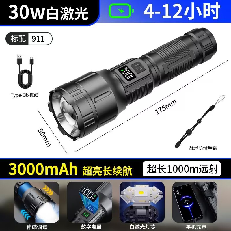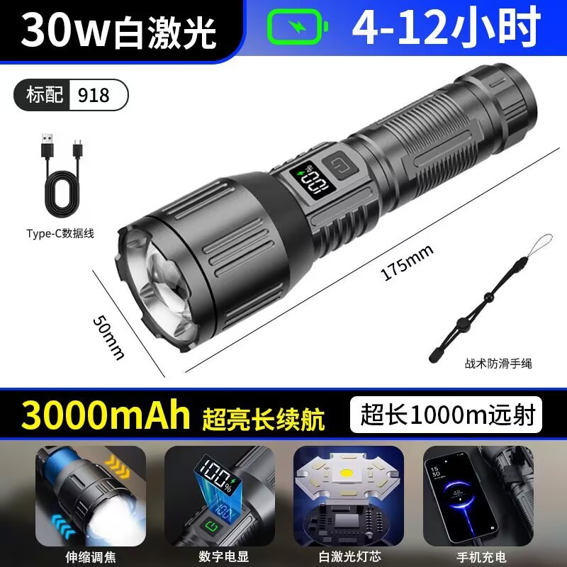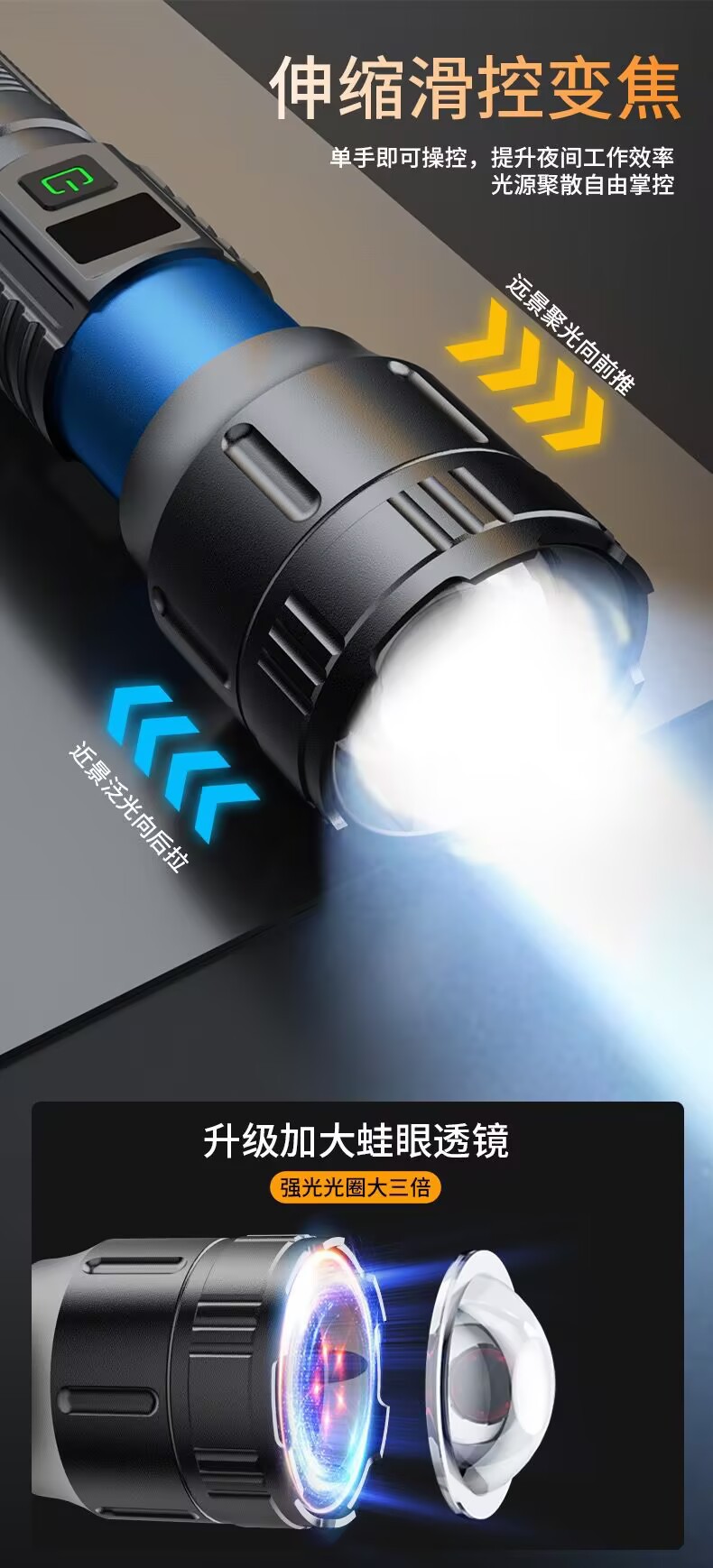 국경 간 손전등 야외 비상 USB 충전 오래 지속되는 슈퍼 밝은 야외 조명 손전등스토어 가기