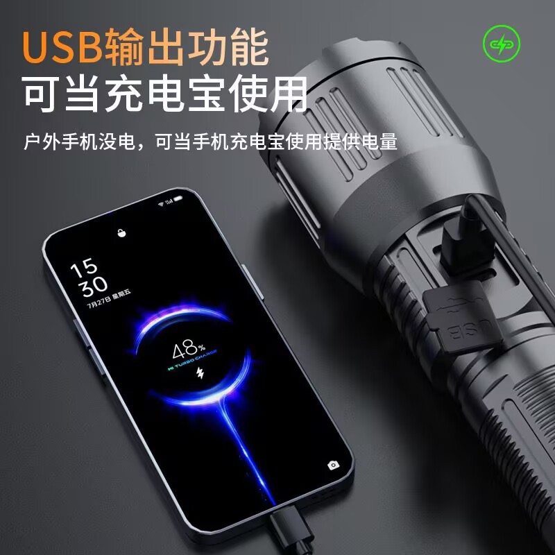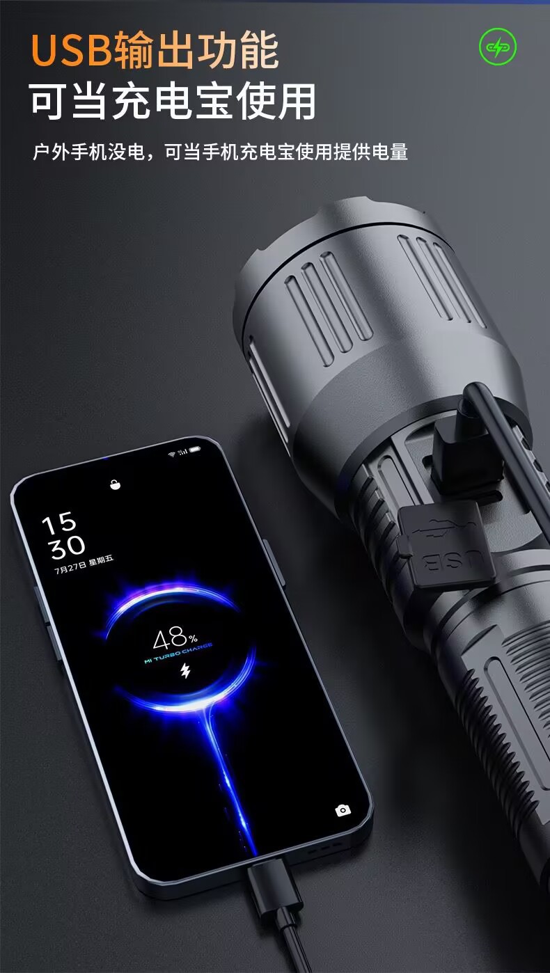 국경 간 손전등 야외 비상 USB 충전 오래 지속되는 슈퍼 밝은 야외 조명 손전등