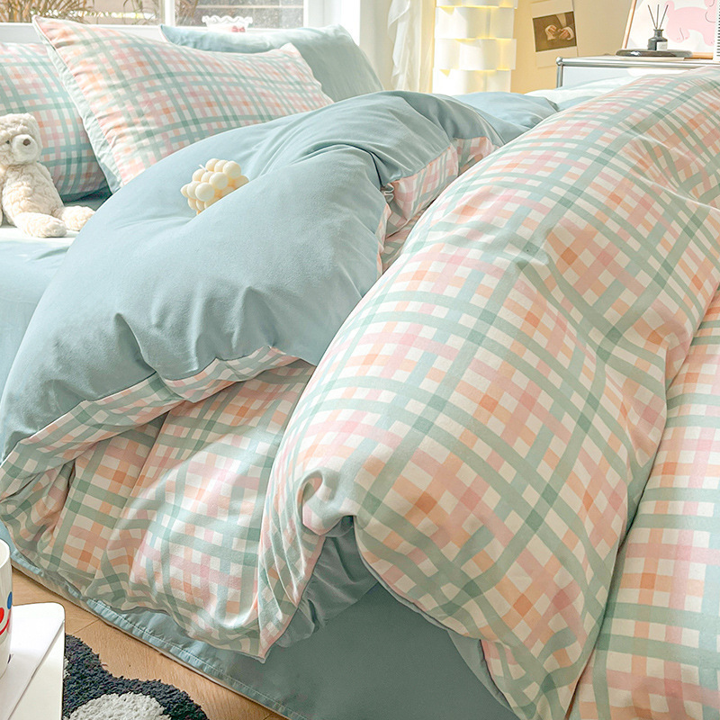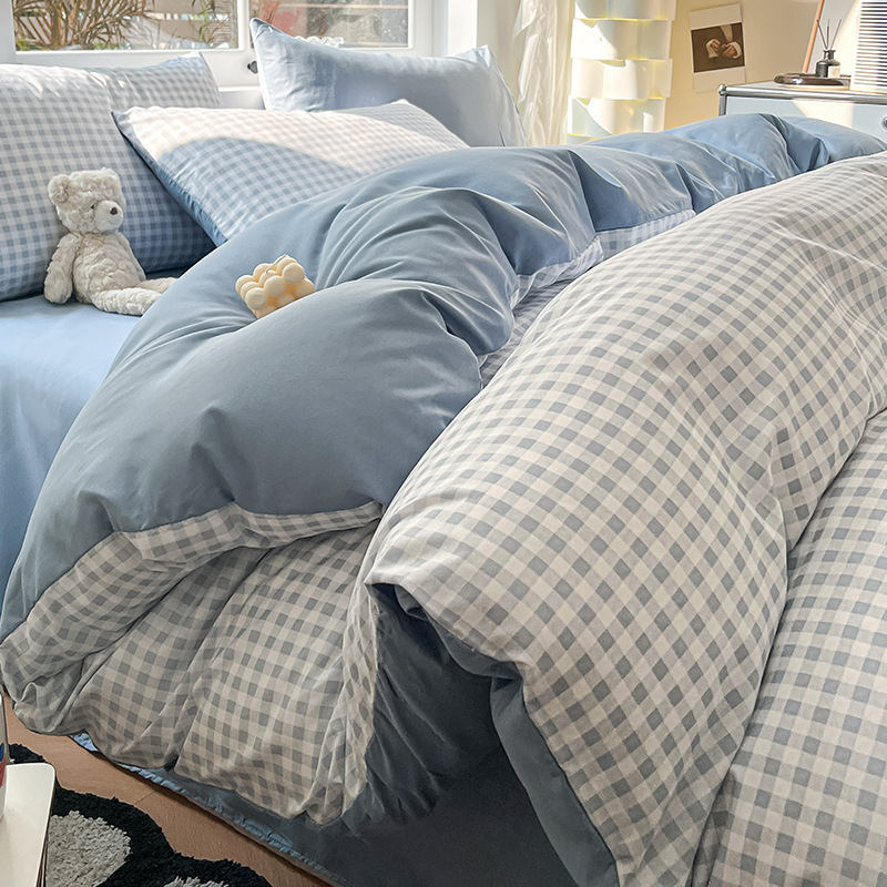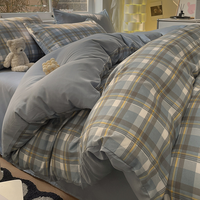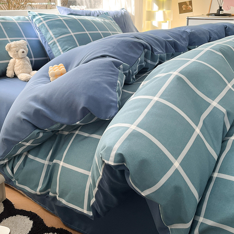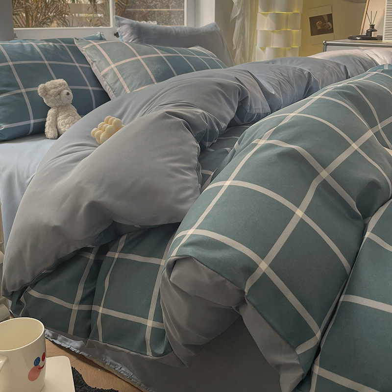 실내 기숙사 3 조각 세트 4 조각 세트 4 개의 싱글 침대 시트 침대 제품 여름 이불 커버 이불 커버 샌딩 반응성 인쇄 및 염색