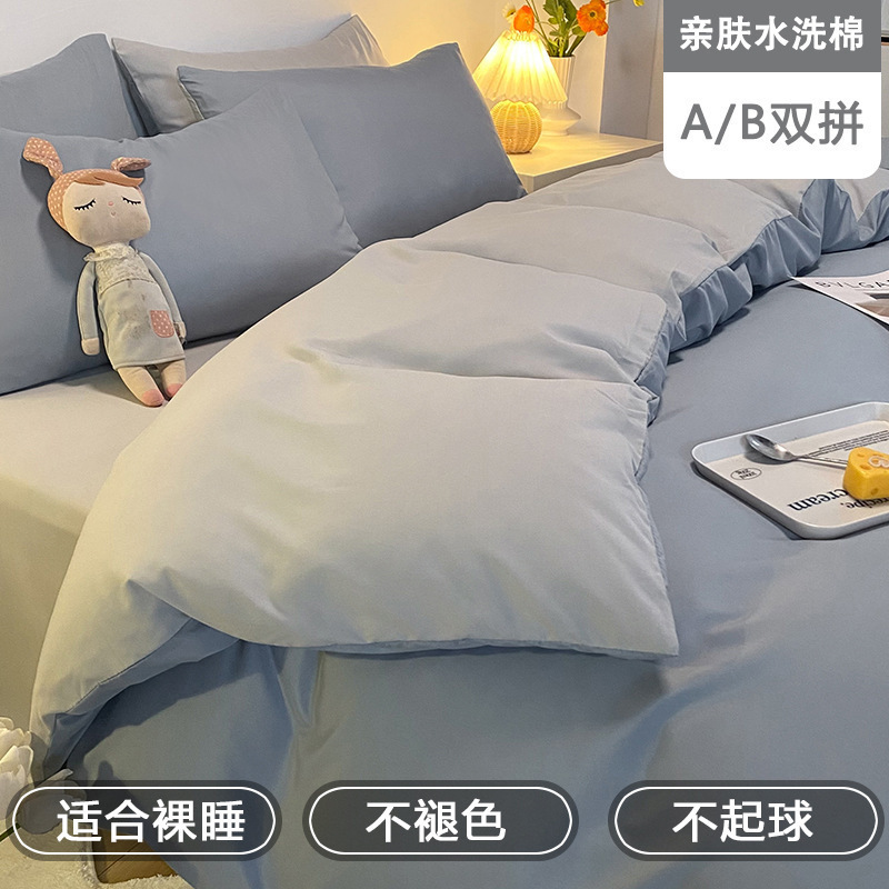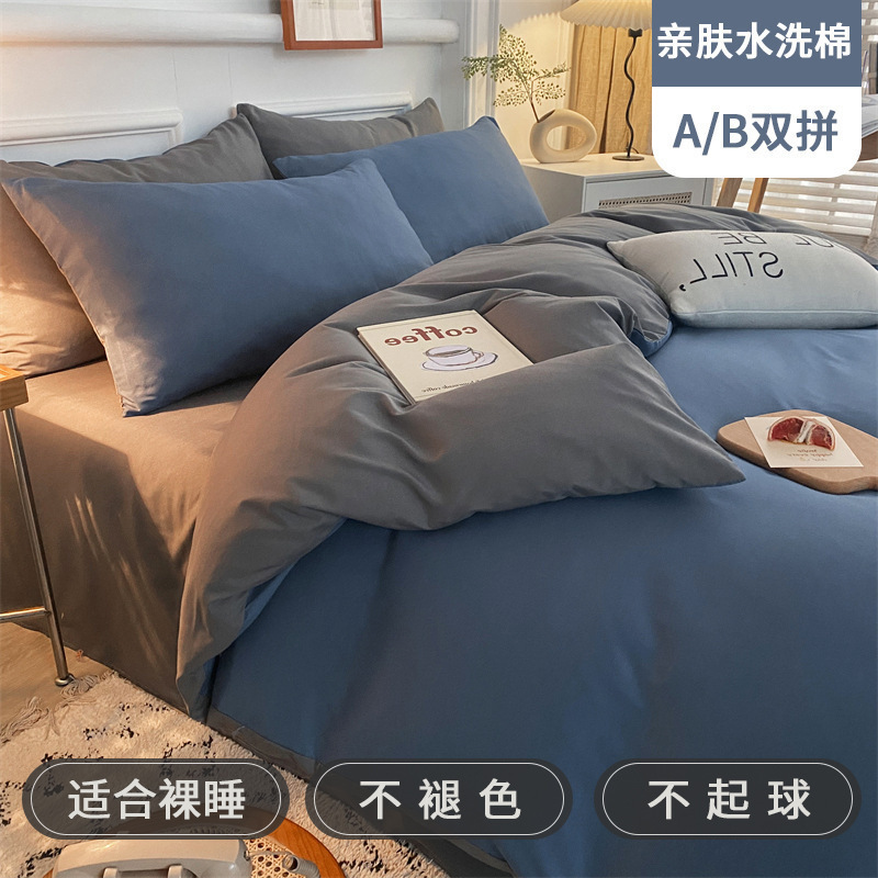 실내 기숙사 3 조각 세트 4 조각 세트 4 개의 싱글 침대 시트 침대 제품 여름 이불 커버 이불 커버 샌딩 반응성 인쇄 및 염색스토어 가기
