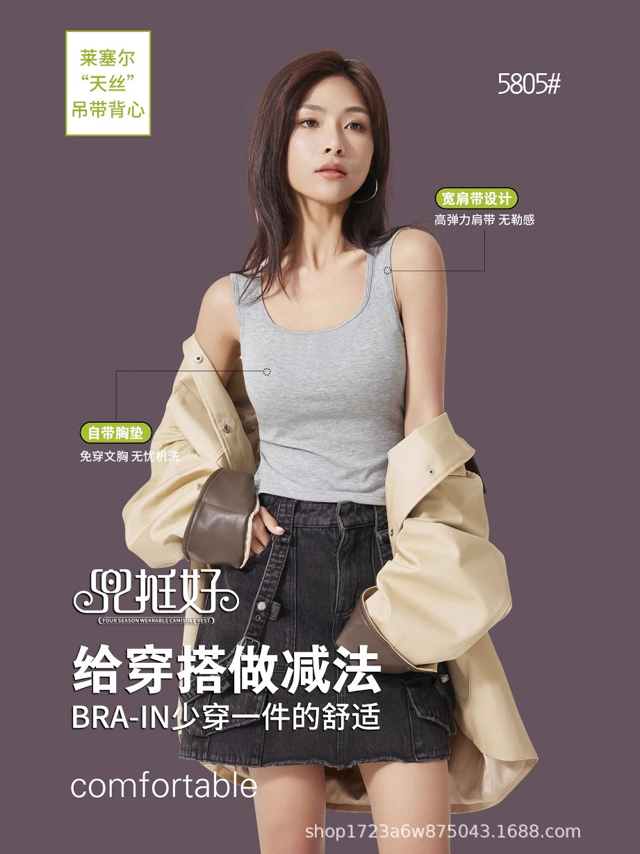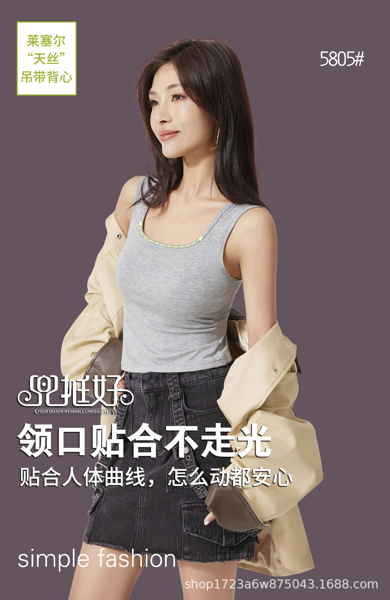 올 매치 양면 U-넥 소프트 스트랩 민소매 올 매치 슬림 핏 샤넬 스타일 투웨이 솔리드 컬러 조끼 착용스토어 가기
