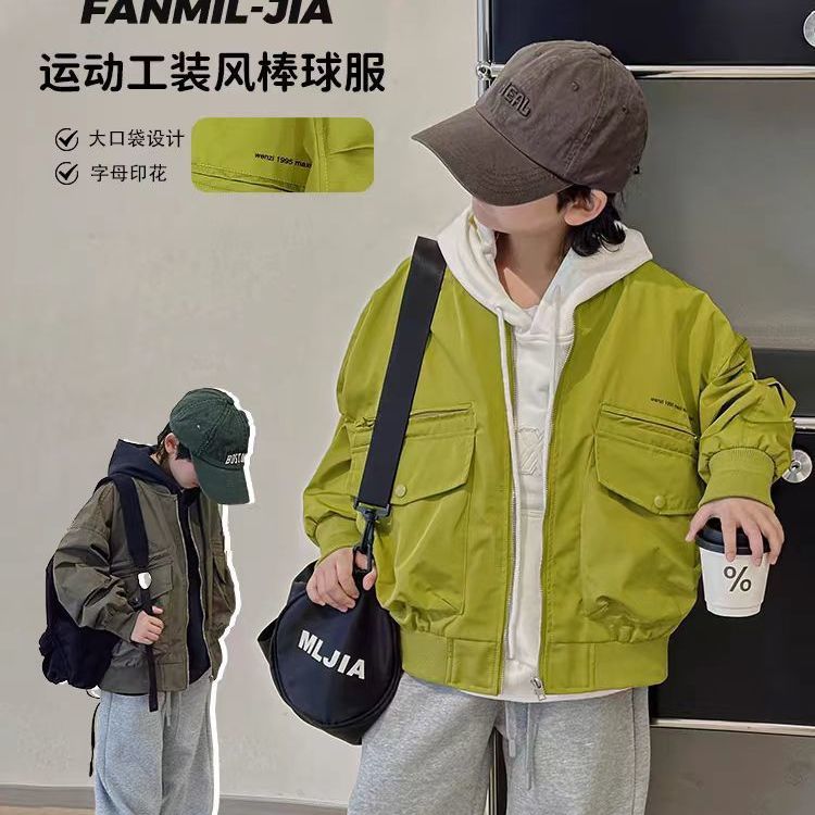 어린이 야구 세트 소년 작업복 코트 2025 년 봄과 가을 새로운 스타일 탑 큰 어린이 캐주얼 자켓 트렌디스토어 가기