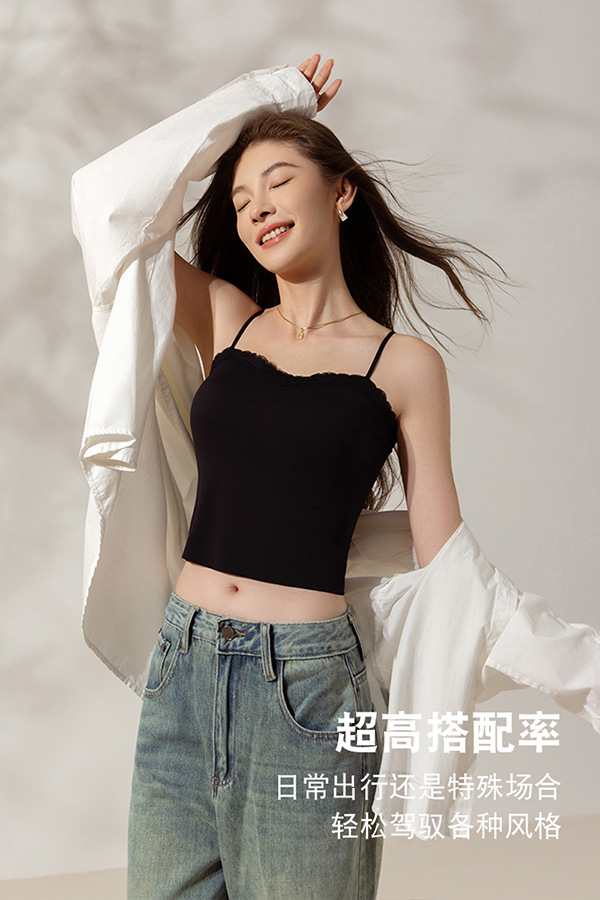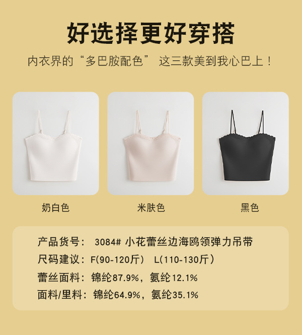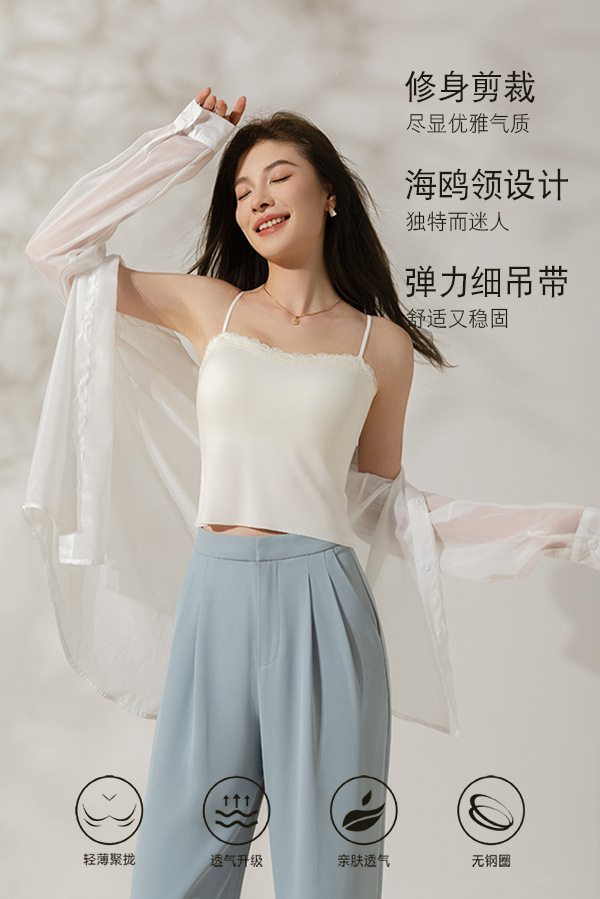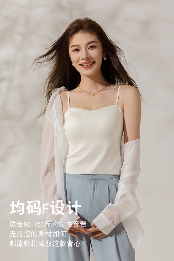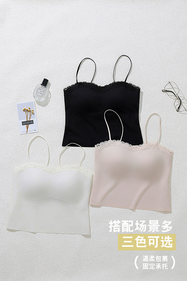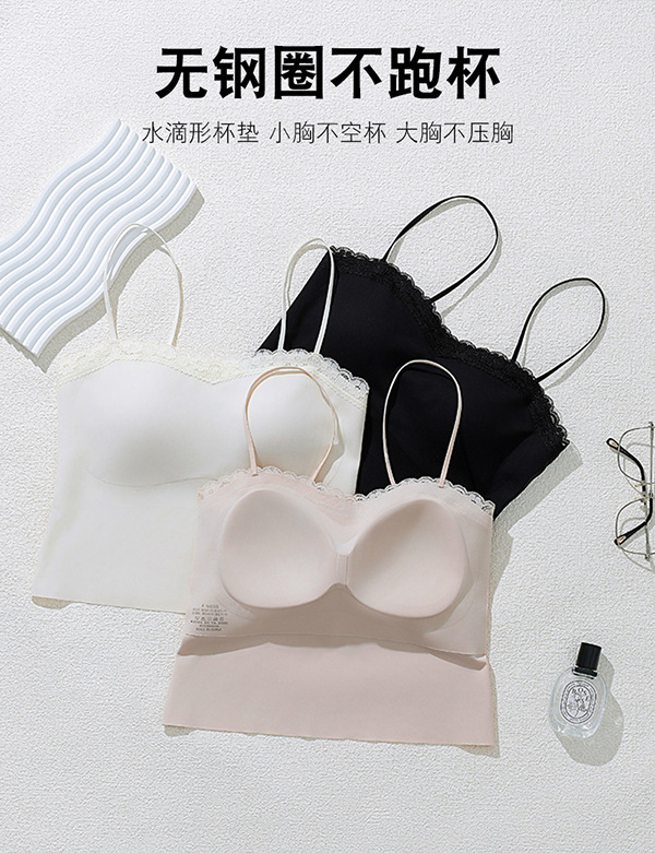 레이스 트림 여성용 여름 캐미솔, 가슴 패드 내장, 고정컵, 아이스 실크, 아름다운 등 디자인, 외부 착용 가능한 튜브탑 탑스토어 가기