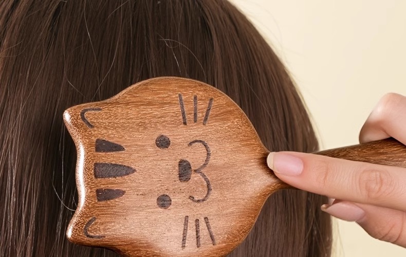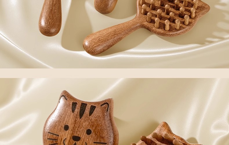 키티 샌달 우드 마사지 빗 머리 자오선 압축 피부 창조적 인 만화 키티 멜로우 및 붙지 않은 머리 감압 거친 치아 빗