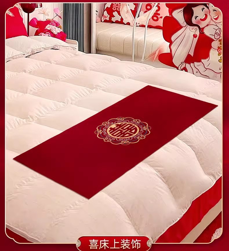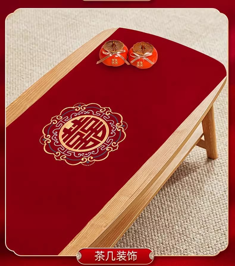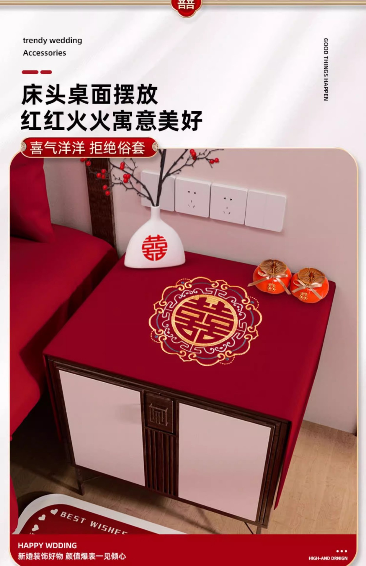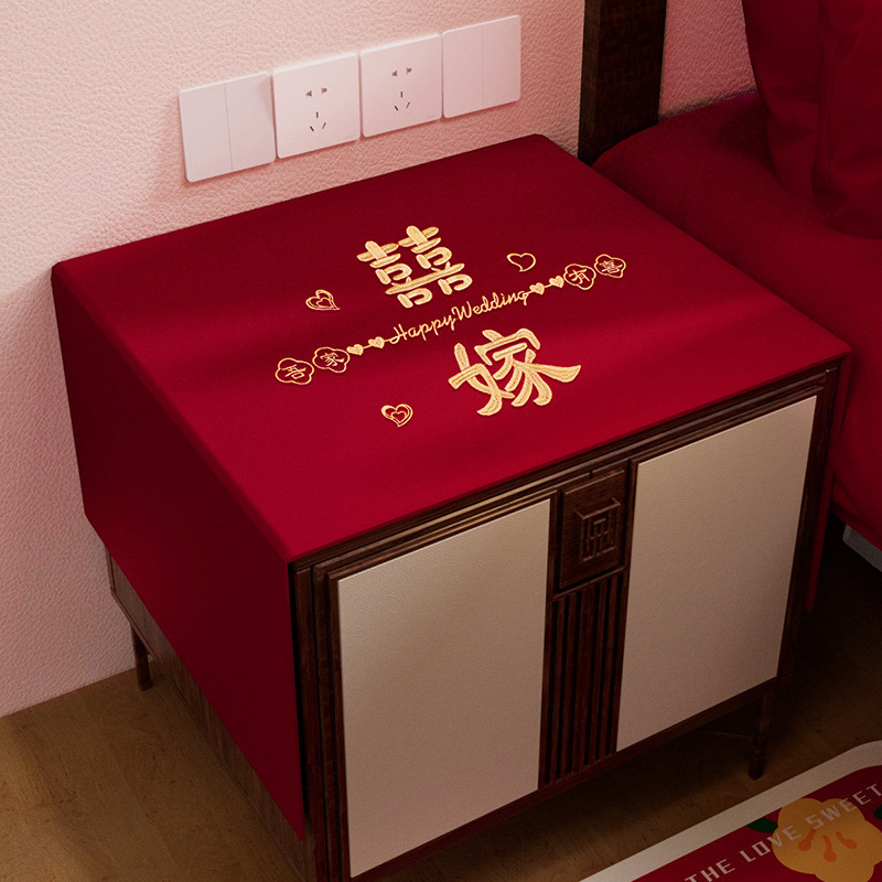 빨간 침대 옆 테이블 커버 천 웨딩 축제 장식 커피 테이블 식탁 방진 천 웨딩 룸 배열 웨딩 용품스토어 가기