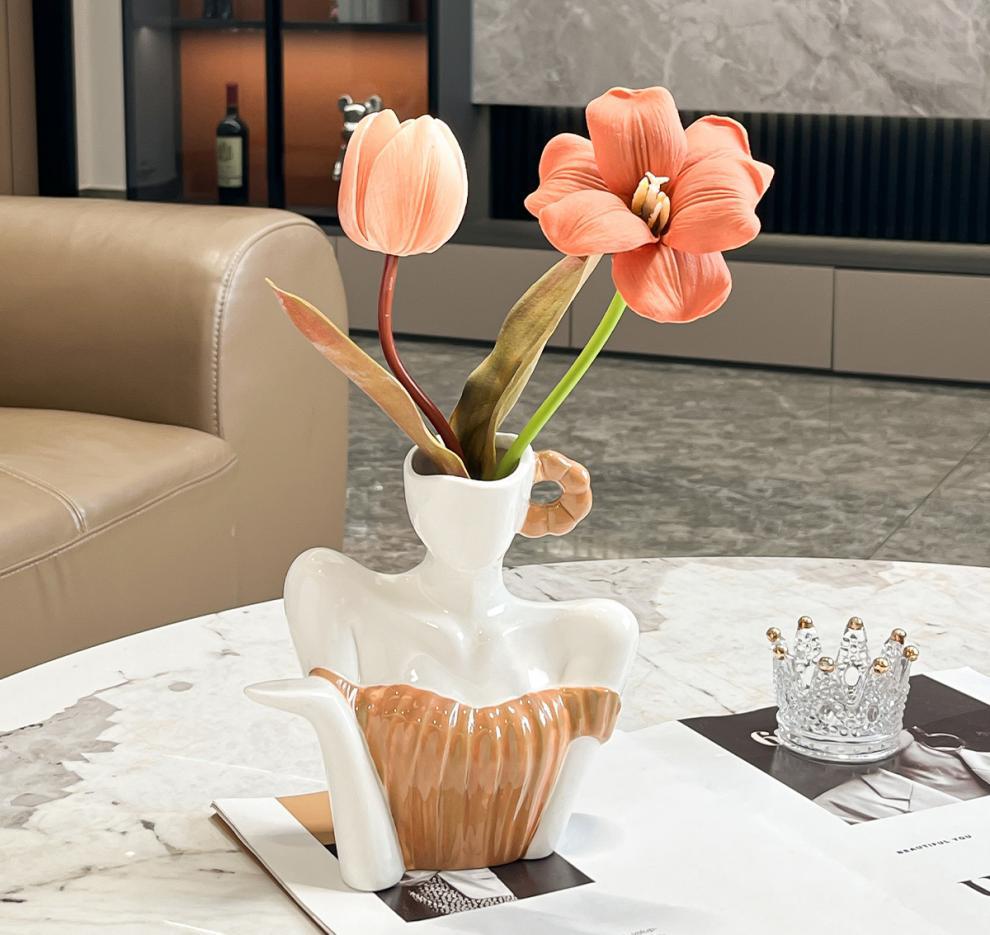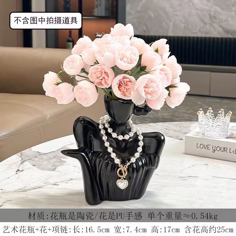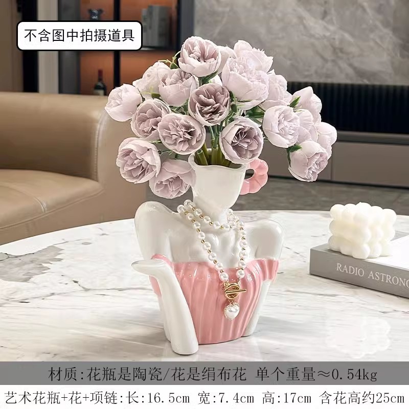 ∝ 간단한 현대 장식 장식 예술 여신 쇄골 세라믹 꽃병 입구 데스크탑 거실 공예 진자스토어 가기