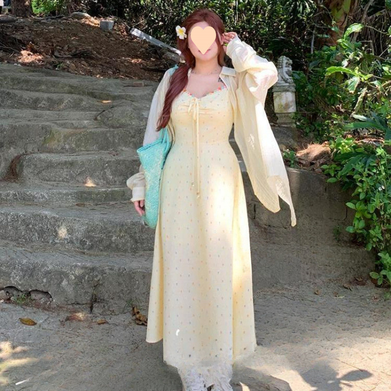 Annie No Fire Vacation 2024 레이스 여름 달콤한 새로운 젠틀 원피스 플러스 사이즈 꽃 슬립 원피스