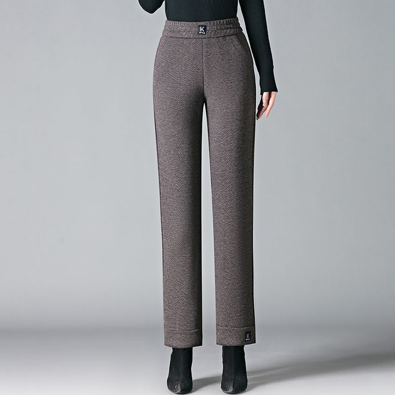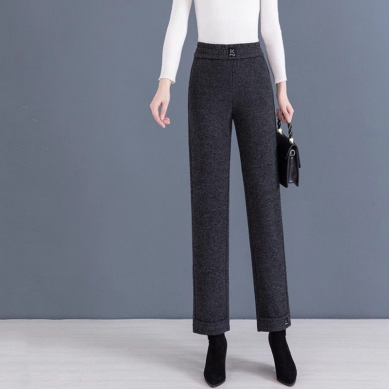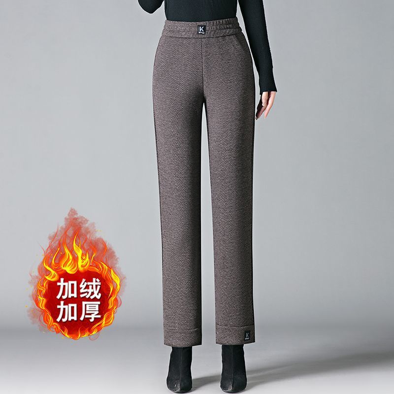 모직 바지 여성의 가을과 겨울 높은 허리 여성 바지 기모 두꺼운 중년 어머니 바지 작은 캐주얼 스트레이트 바지스토어 가기