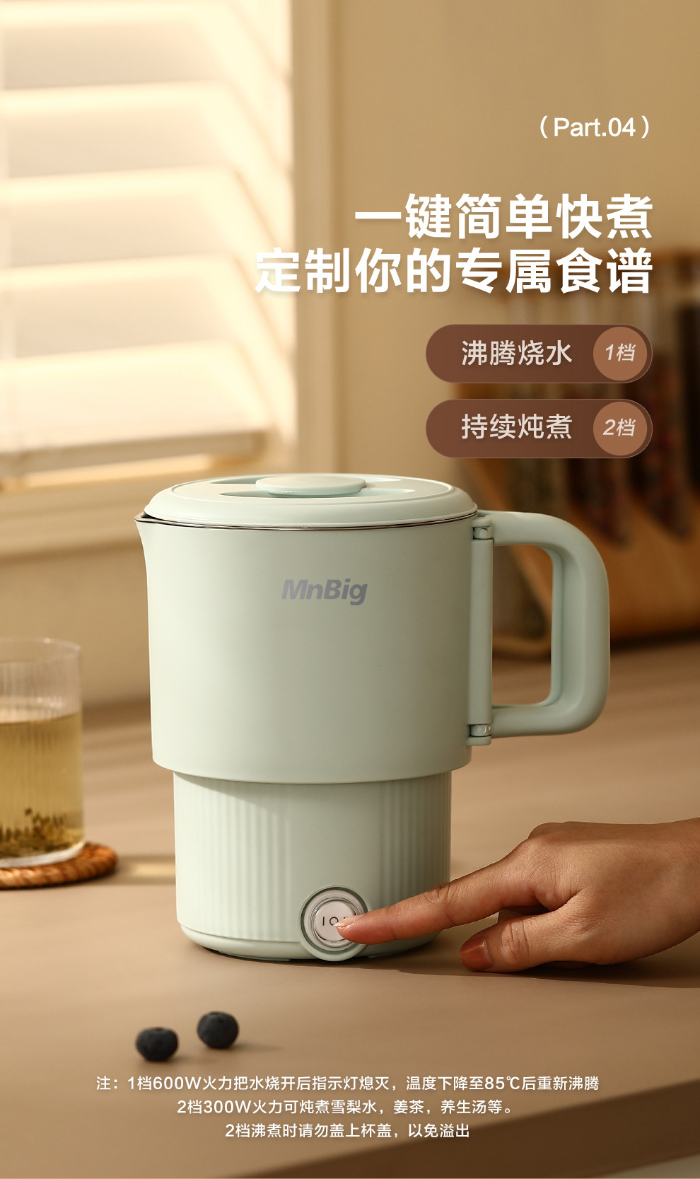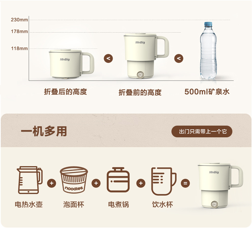 접이식 주전자 여행 휴대용 주전자 스테인리스 전기 물 컵 미니 가정용 작은 절연
