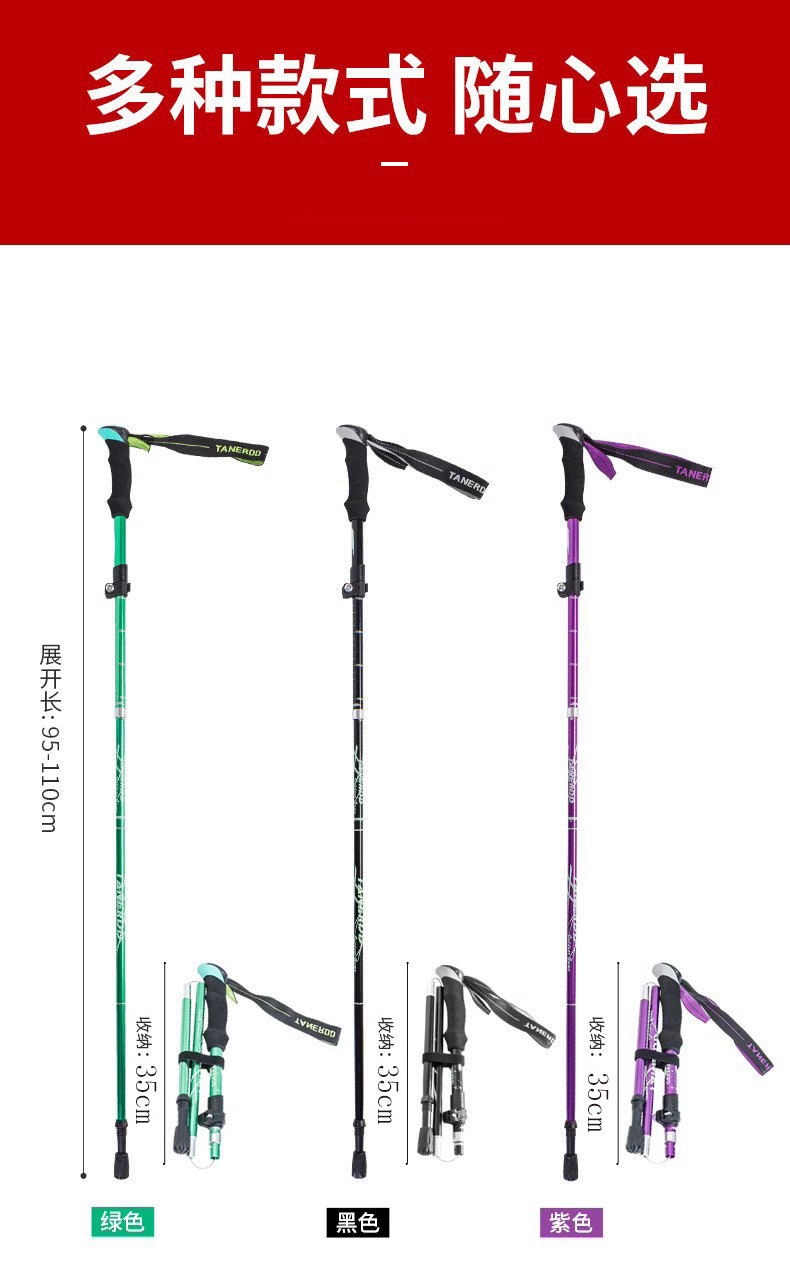 알파인 스틱 알루미늄 합금 접히는 짧은 개폐식 야외 워킹 스틱 하이킹 워킹 스틱