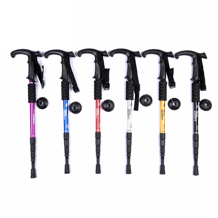 • 트레킹 폴 T자형 손잡이(검정색) 4단 텔레스코픽 알루미늄 합금