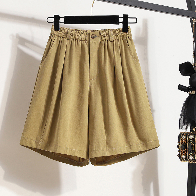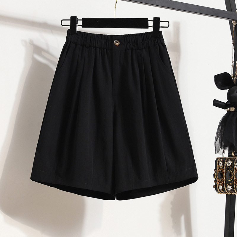 플러스 사이즈 여자 2025 년 여름 새로운 슬림 핏 느슨한 와이드 레그 바지 통통한 소녀를위한 배 모양의 피겨 반바지스토어 가기