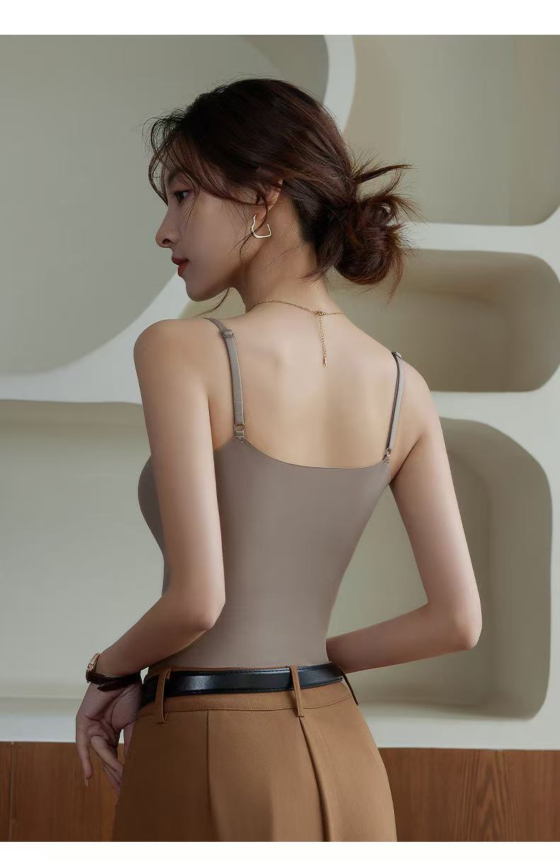 비 마킹 아이스 실크 슬링 조끼 긴 조정 어깨 스트랩 가슴 패드 고정 컵 외부 착용 슬리밍 베이스 속옷