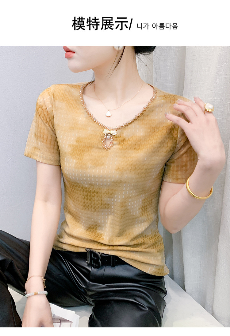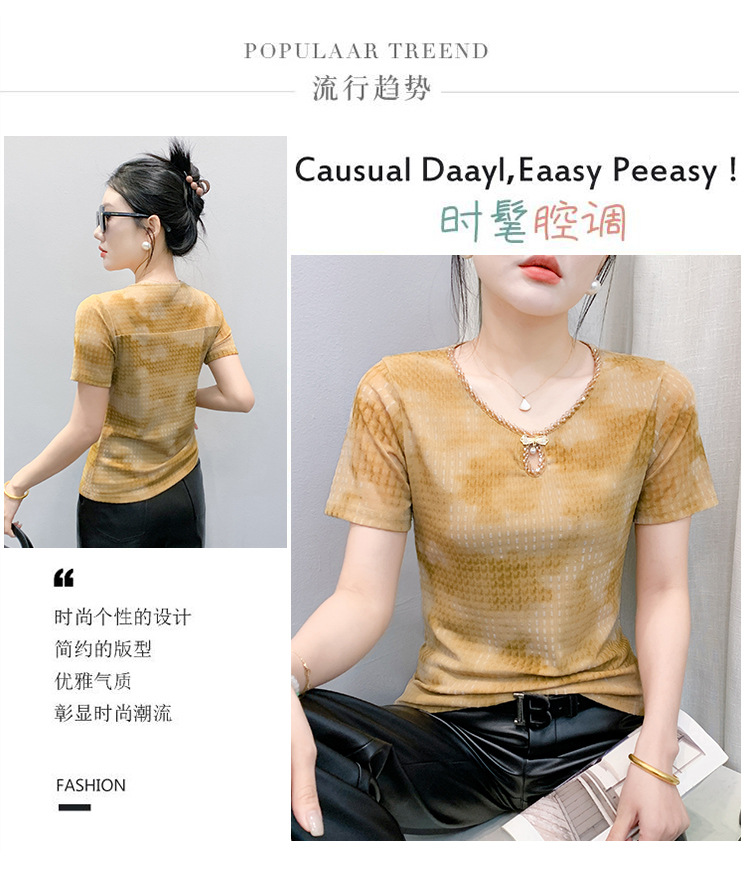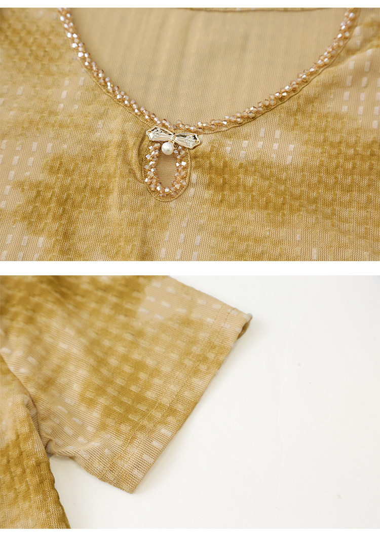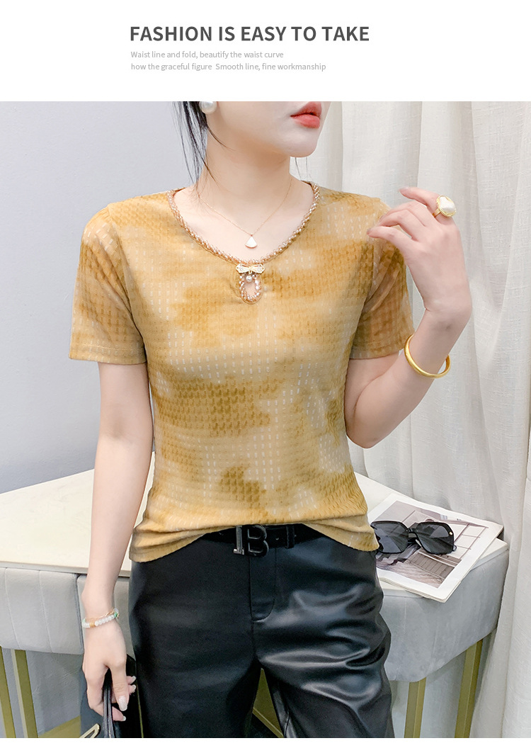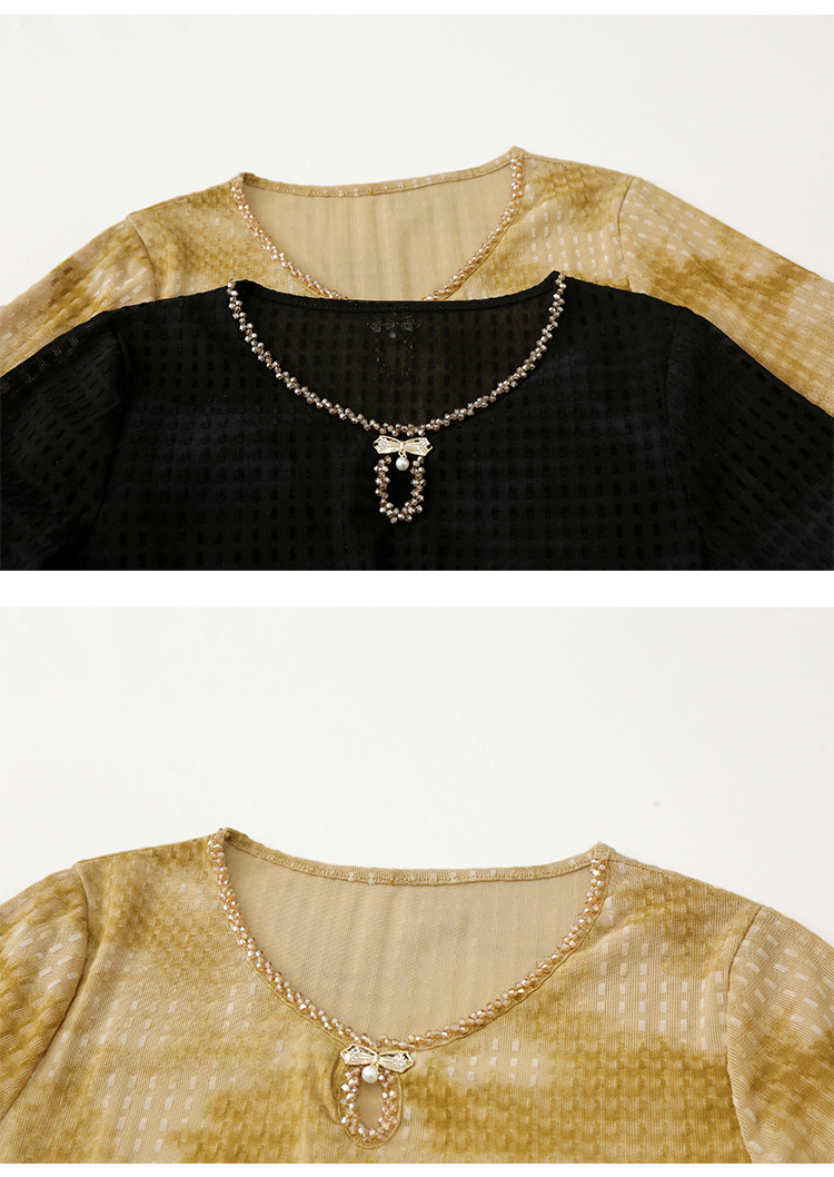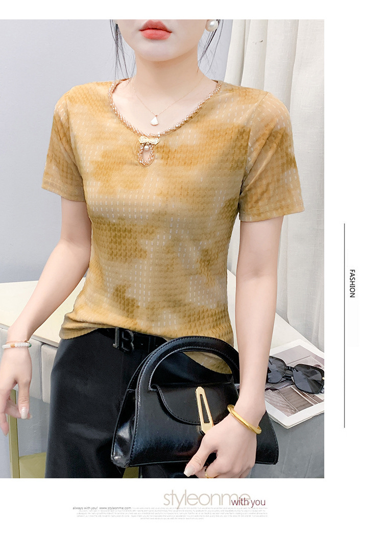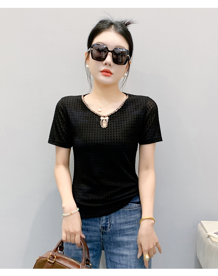둥근 목 구슬 메쉬 짧은 소매 2025 여름 새로운 폴카 도트 캐주얼 여성 의류 중공 패션 베이스 셔츠스토어 가기