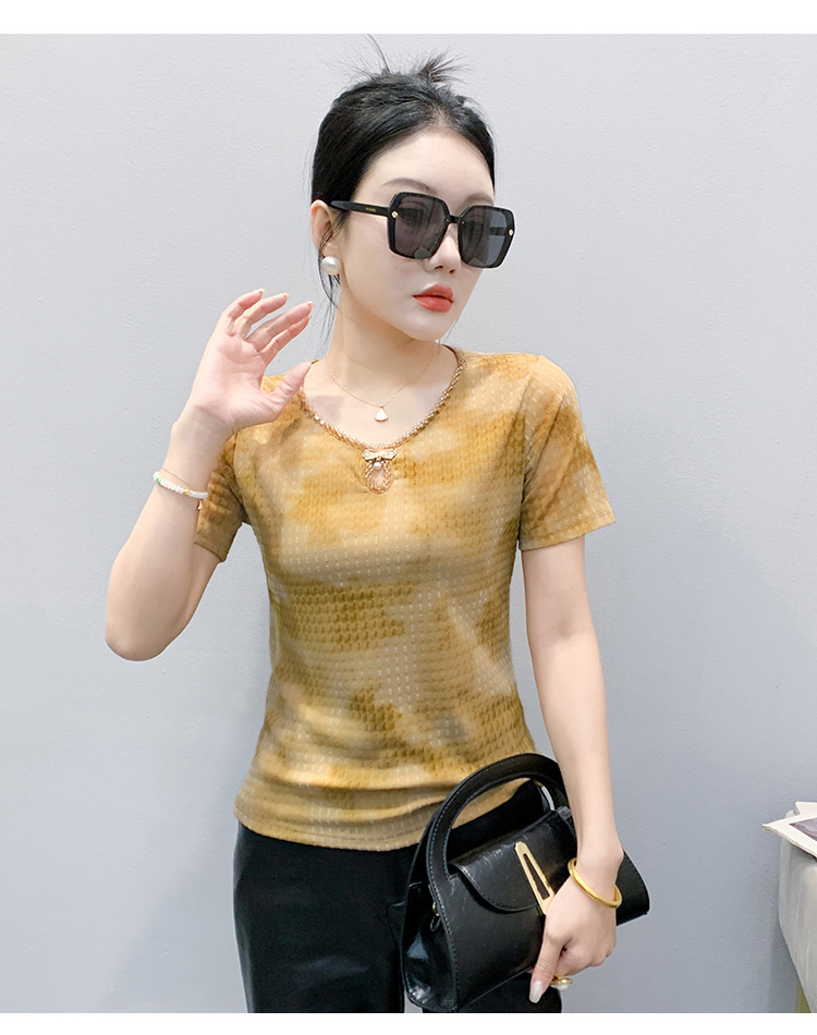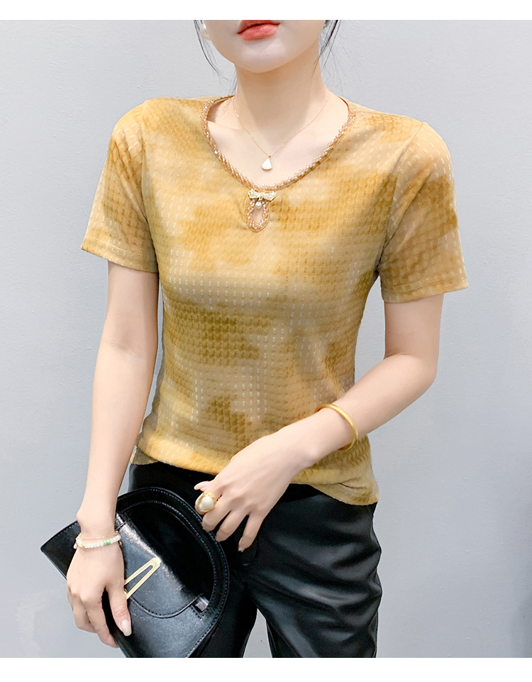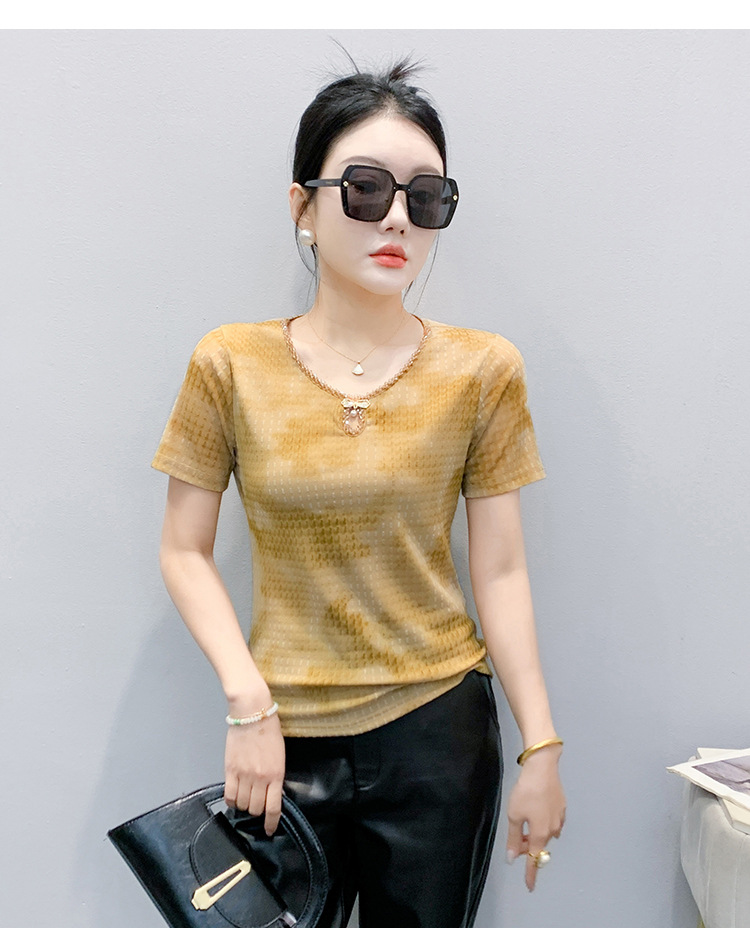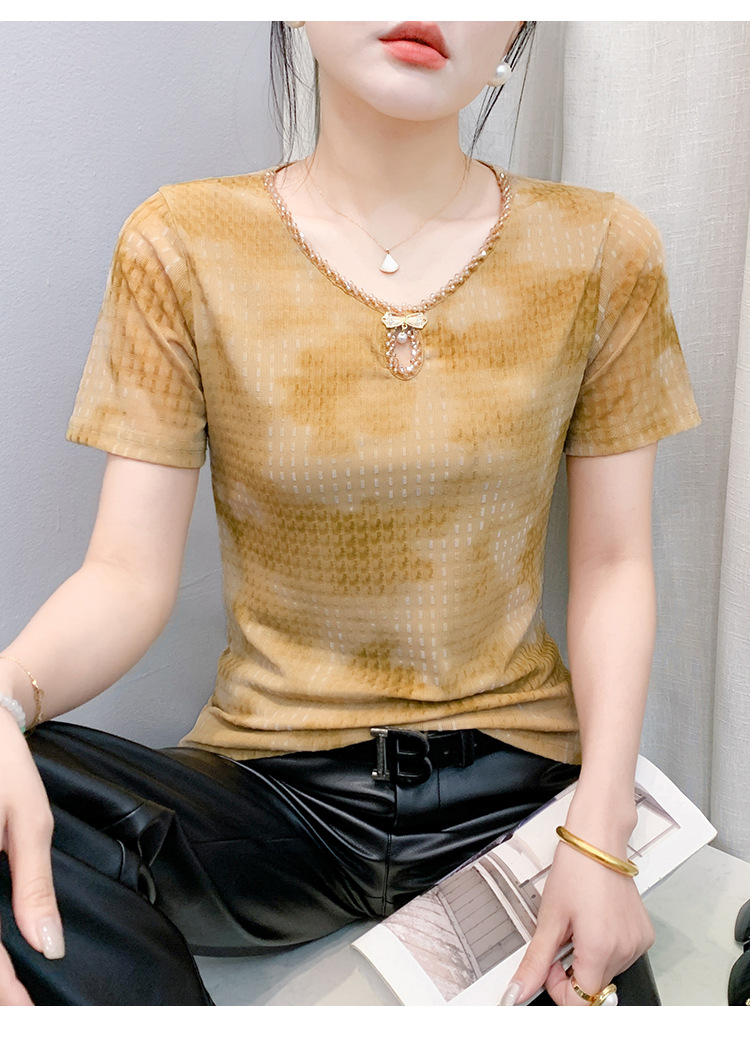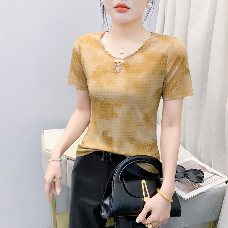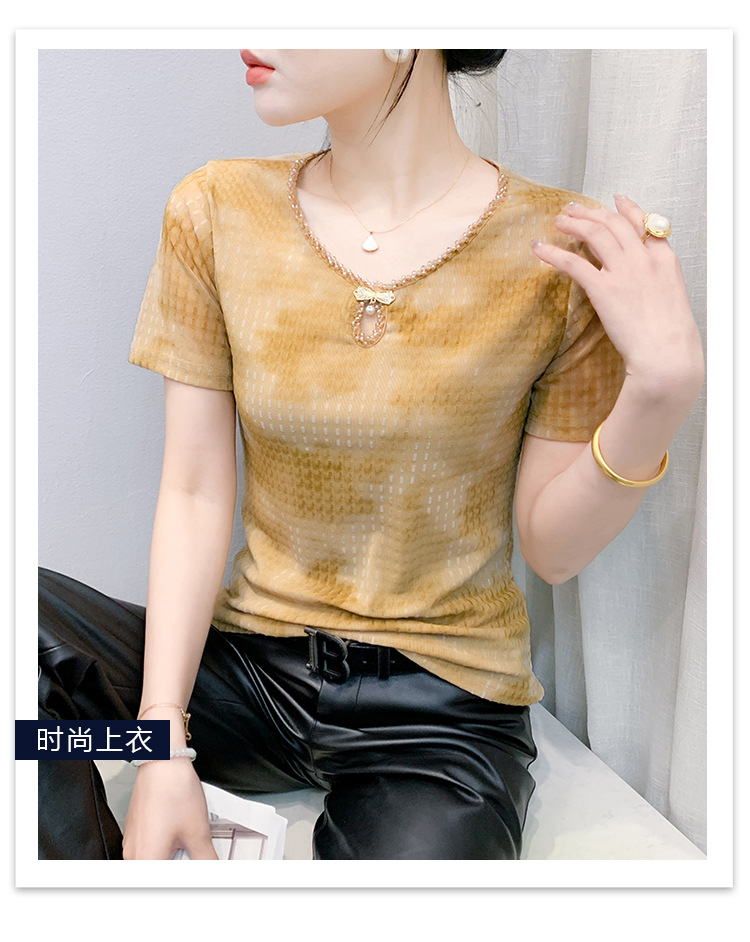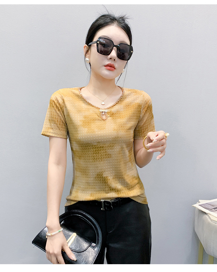 둥근 목 구슬 메쉬 짧은 소매 2025 여름 새로운 폴카 도트 캐주얼 여성 의류 중공 패션 베이스 셔츠스토어 가기