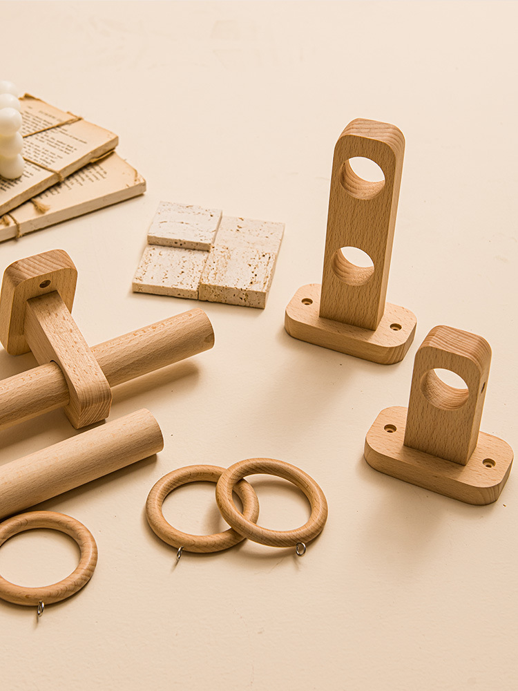 일본 스타일 로그 스타일 솔리드 우드 커튼 로드 로마로드 싱글로드 더블로드 간단한 빛 럭셔리 너도밤 커튼 브래킷 도매