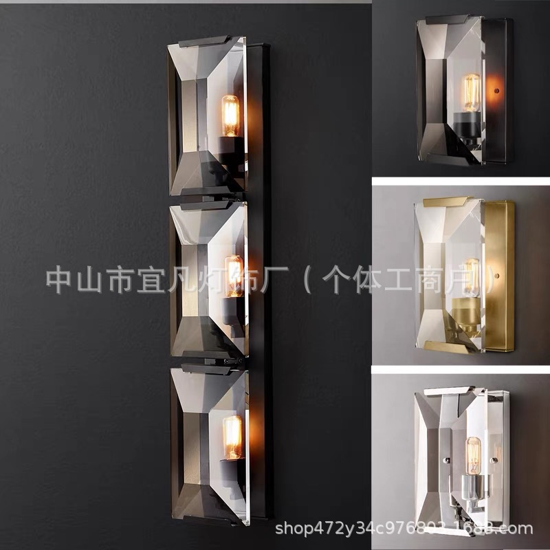 RH 아메리칸 스타일 가벼운 럭셔리 간단한 복고풍 산업 스타일 거실 침실 멀리 침실 벽 램프 창조적 인 독특한 크리스탈 벽 램프