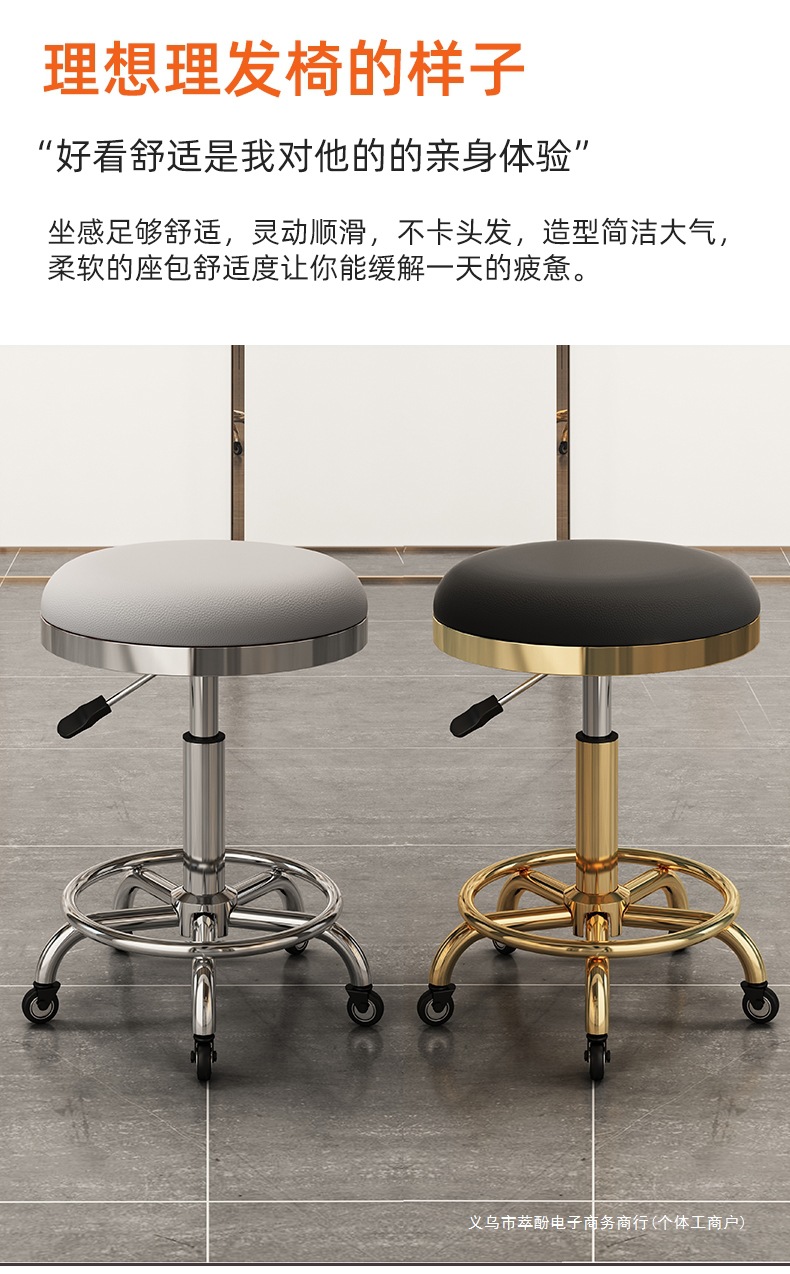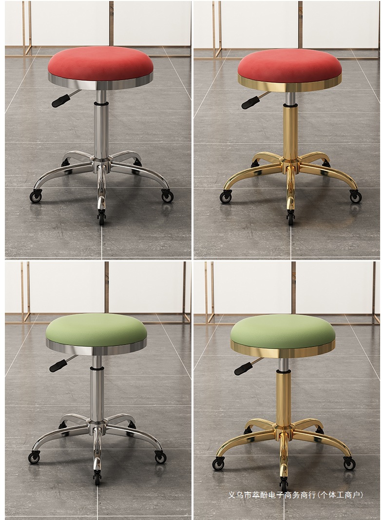근로자 의자 리프팅 라운드 의자 회전 풀리 이발소 마스터 의자 메이크업 스톨 헤어 살롱 스페셜 네일 뷰티 스툴스토어 가기