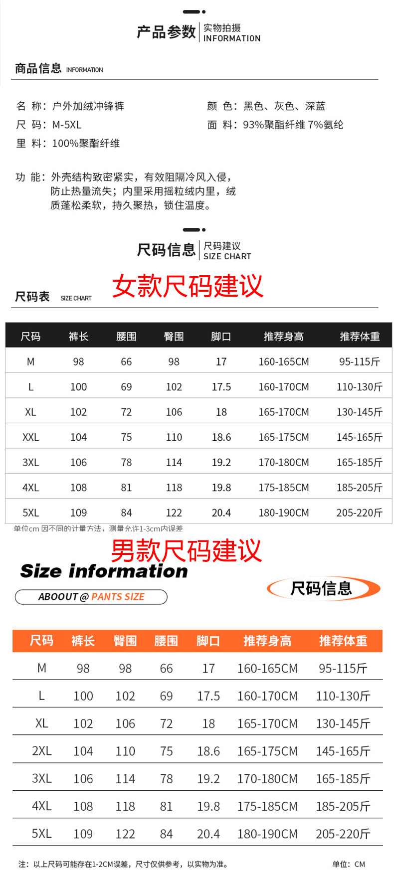 두꺼운 방수 등산 바지 기모 바지 여성용 스키 바지 야외 충전 바지 겨울 소프트 쉘 바지 기모 남성 방수스토어 가기