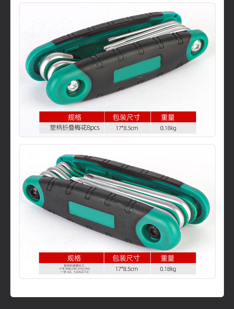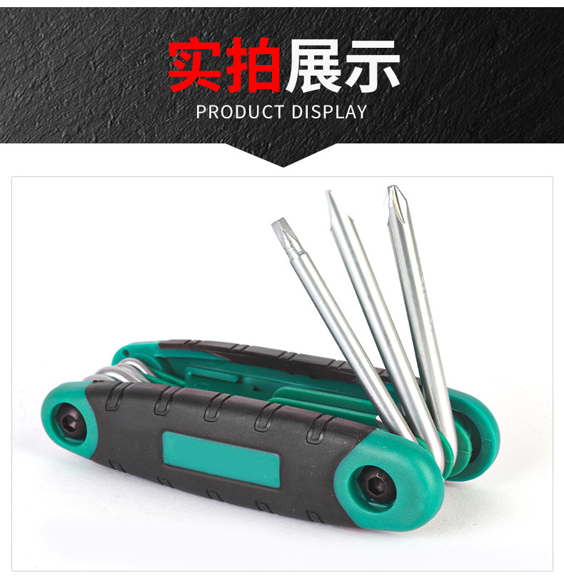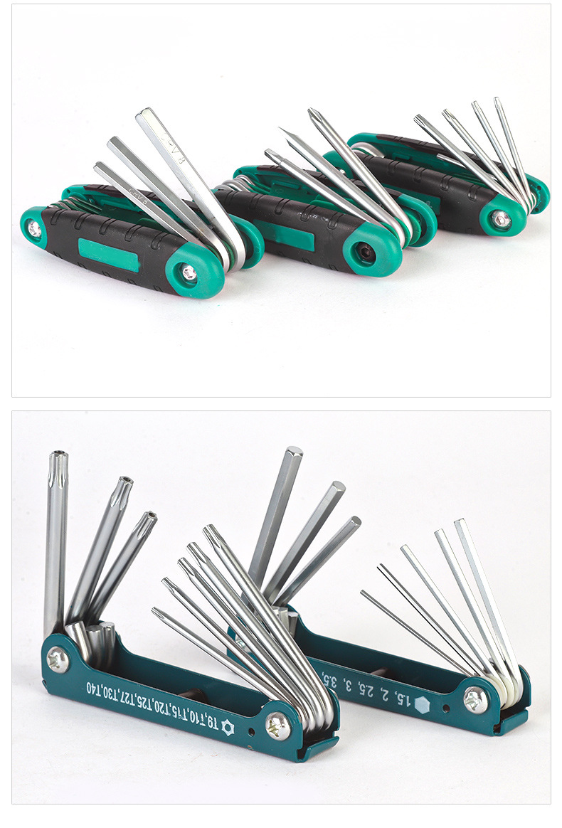 휴대용 접이식 육각 플랫 헤드 매화 조합 도구 6각 드라이버 접이식 육각 렌치 8개 세트