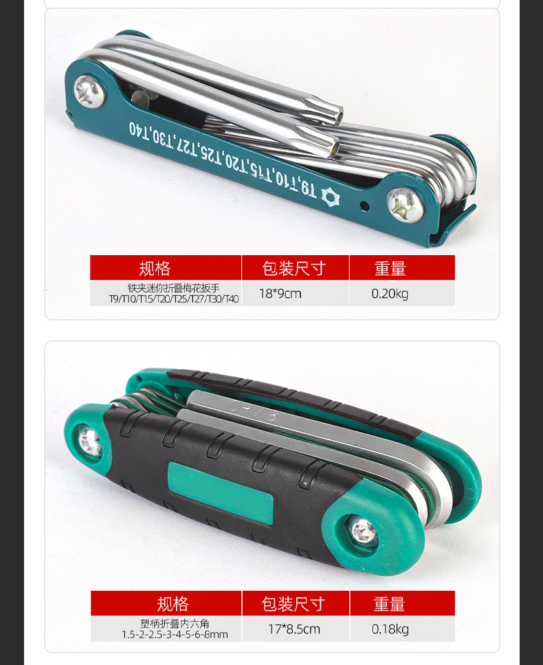 • 철 클램프 미니 접이식 Torx 렌치 T9/T10/T15/T20/T25/T27/T30/T40