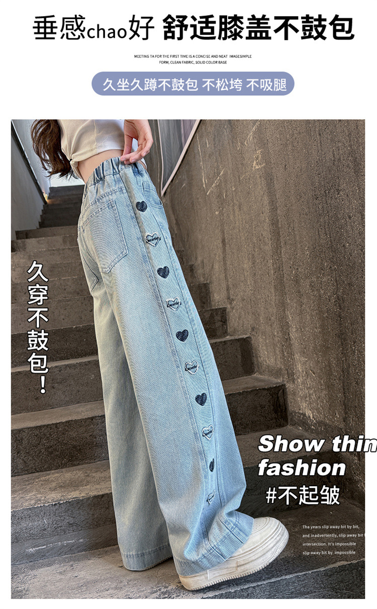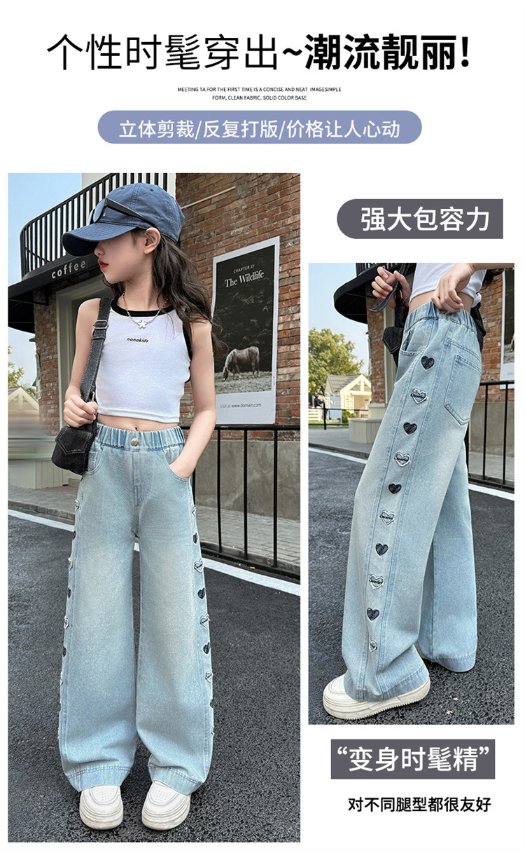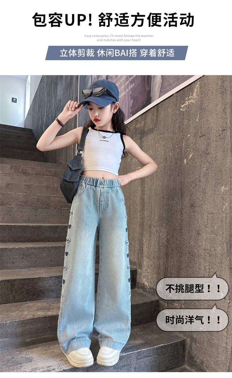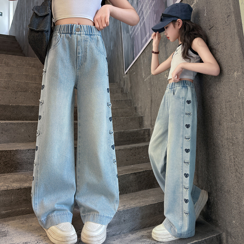 소녀 바지 여름 2025 새로운 어린이 서양식 패션 스트레이트 바지 큰 어린이 캐주얼 와이드 다리 얇은 청바지스토어 가기