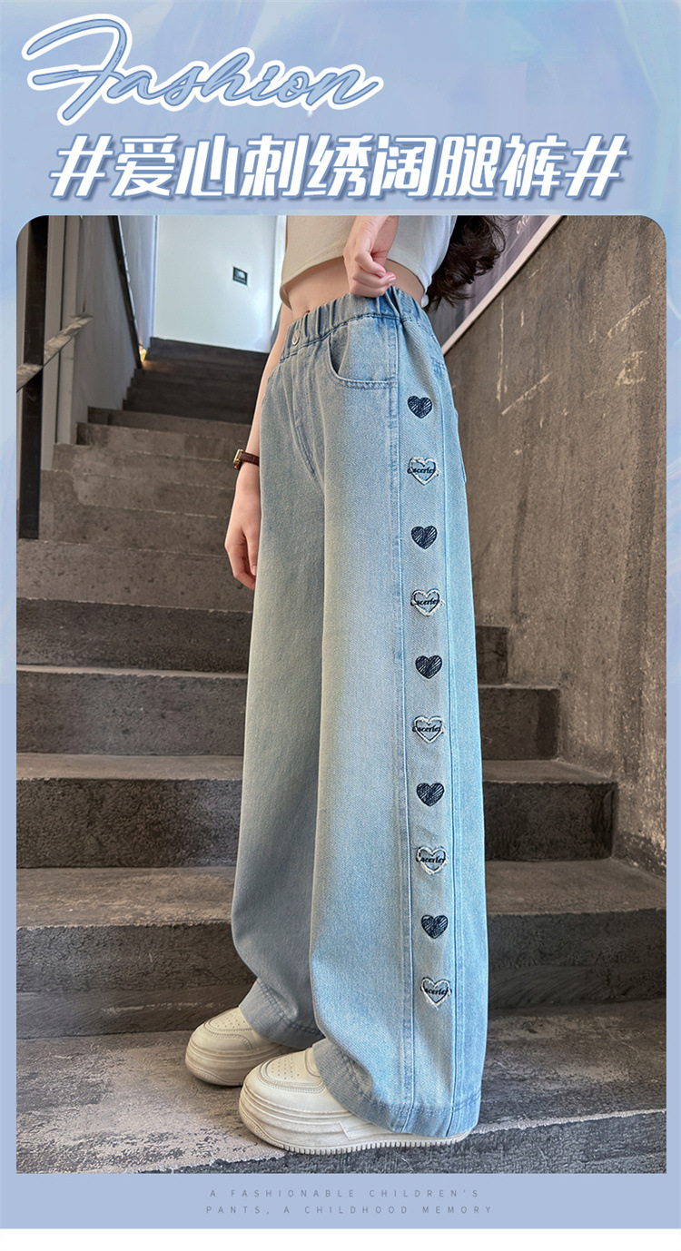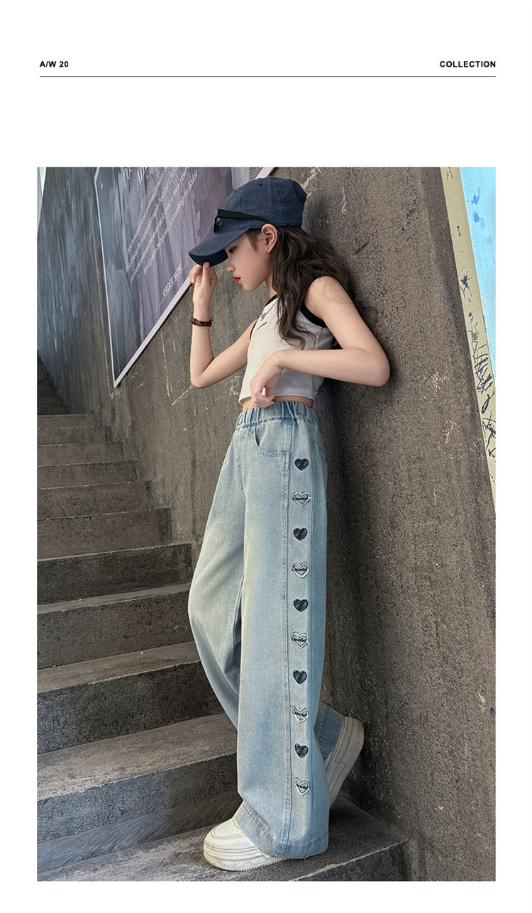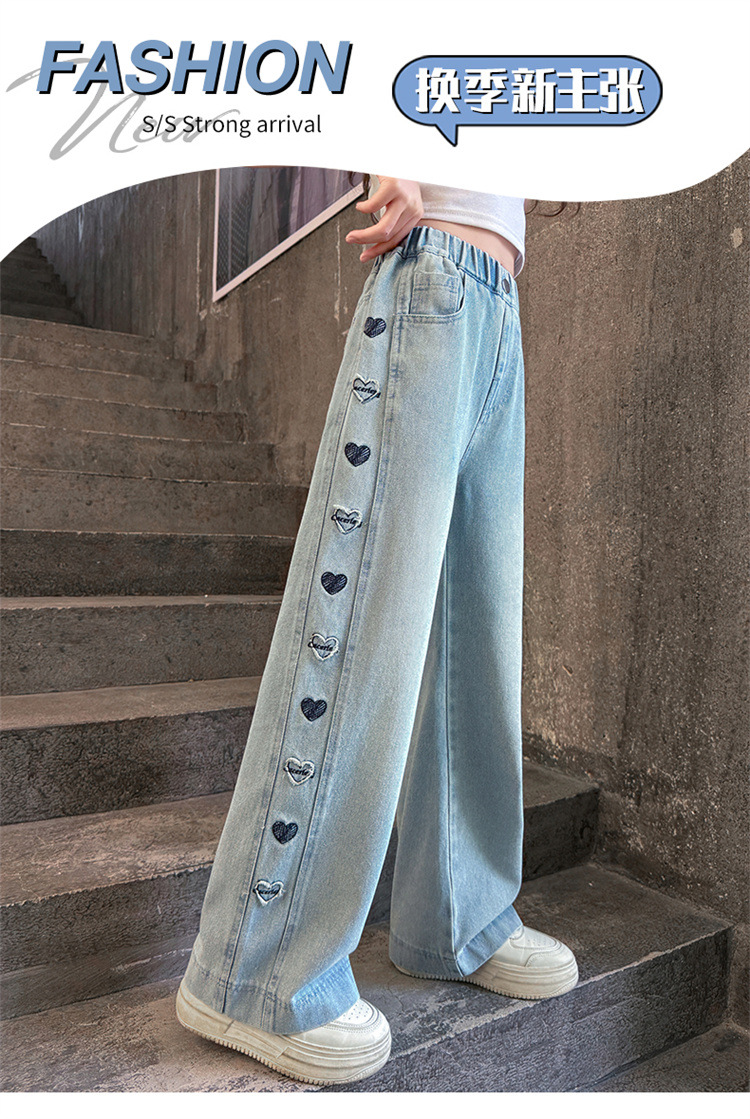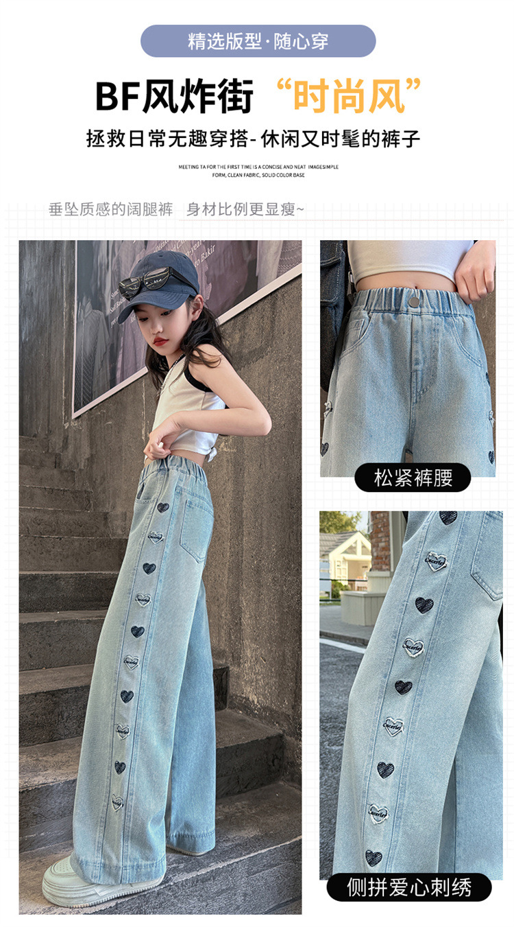 소녀 바지 여름 2025 새로운 어린이 서양식 패션 스트레이트 바지 큰 어린이 캐주얼 와이드 다리 얇은 청바지스토어 가기