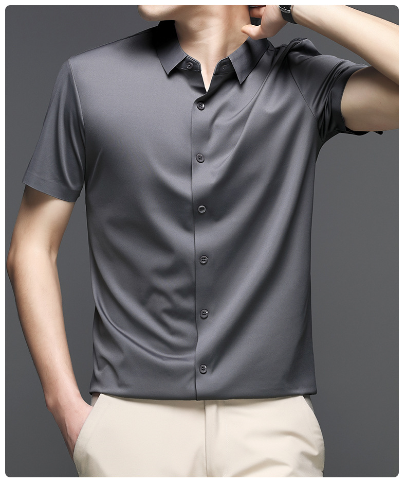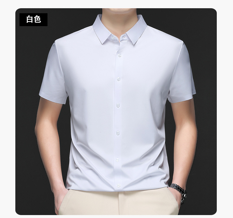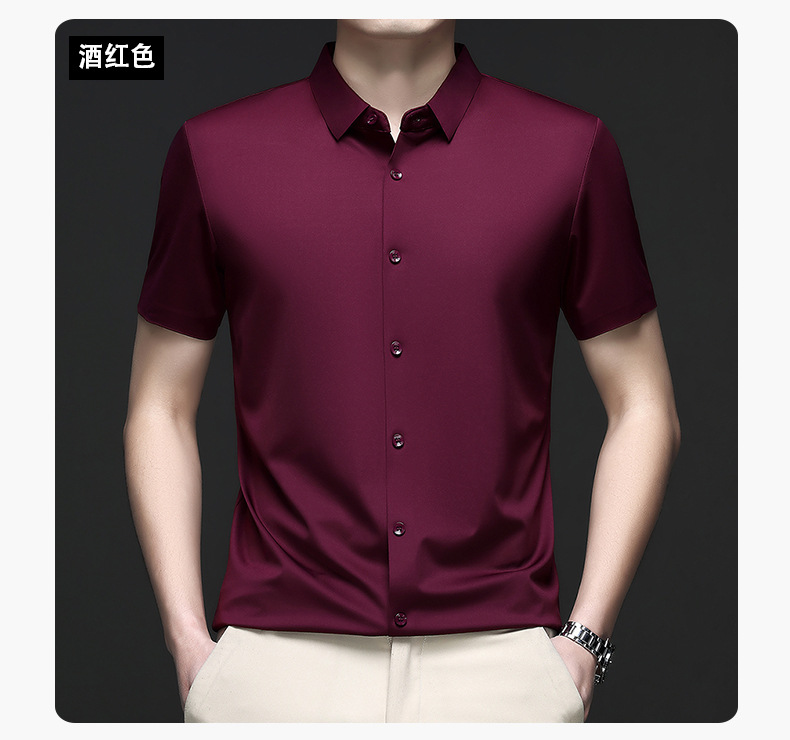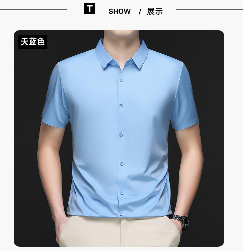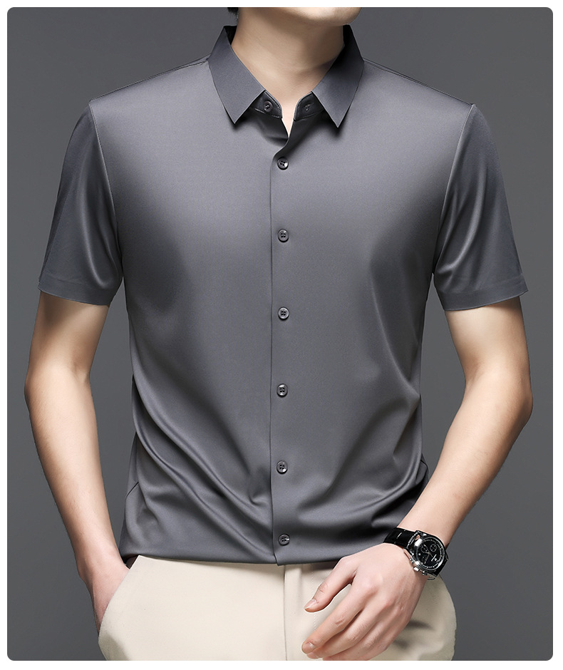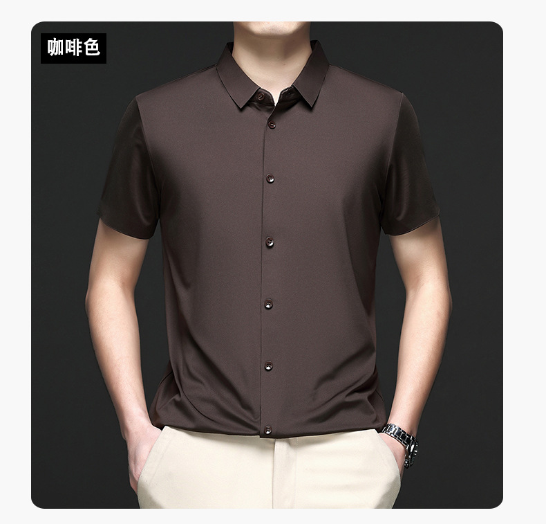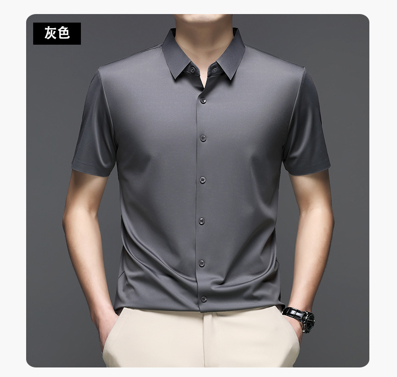 하이 엔드 여름 뽕나무 실크 남성 최고 짧은 소매 단색 원활한 셔츠 비즈니스 전문 원피스 셔츠 공장 직접 판매스토어 가기