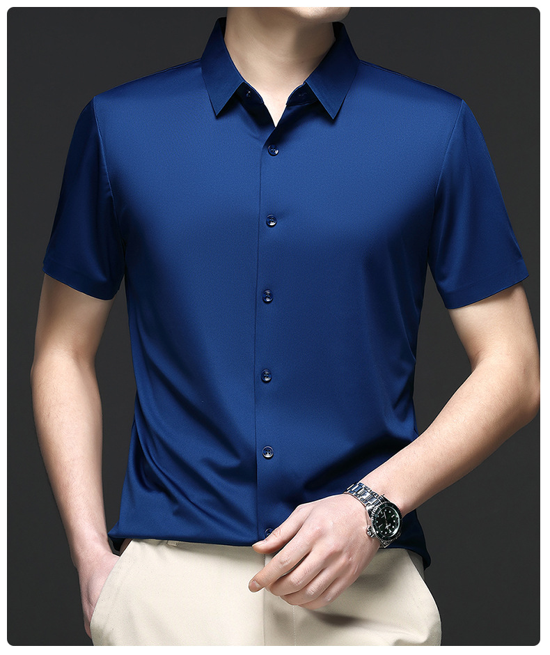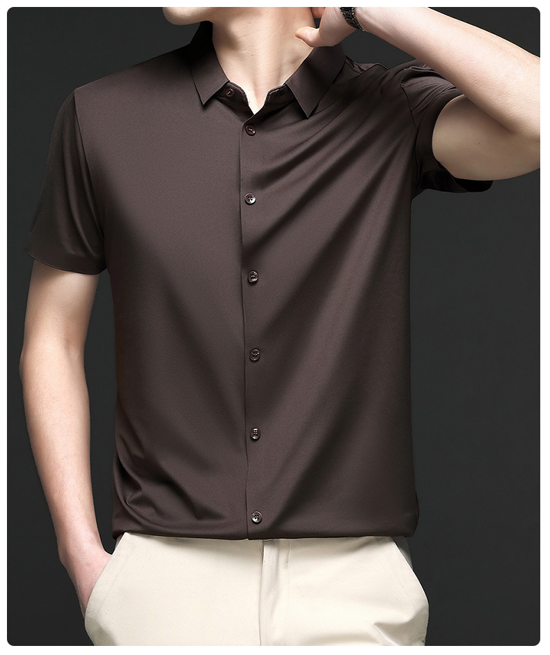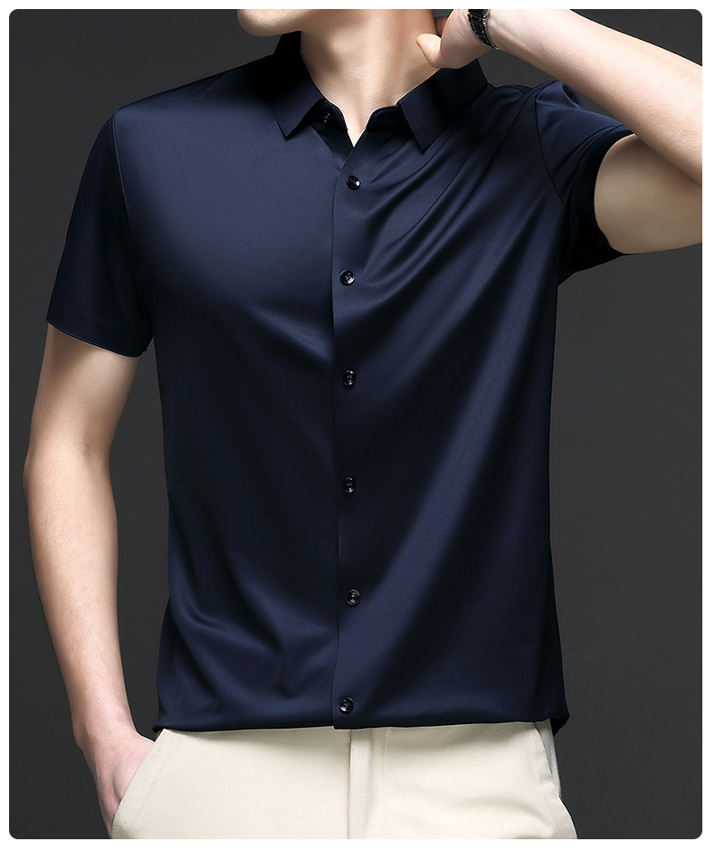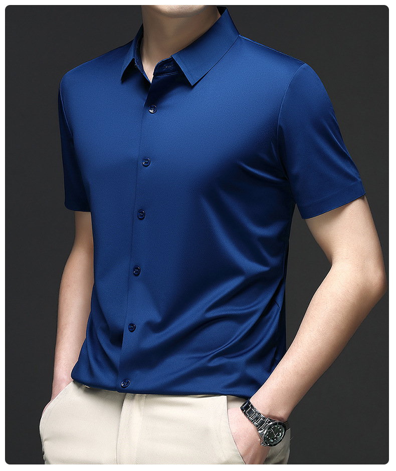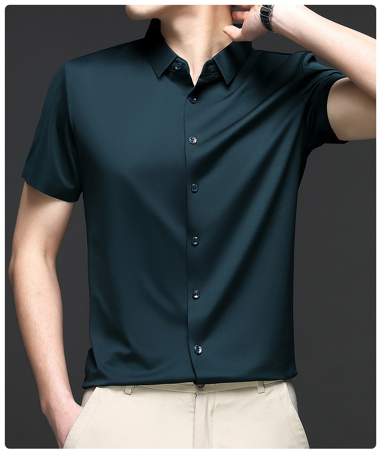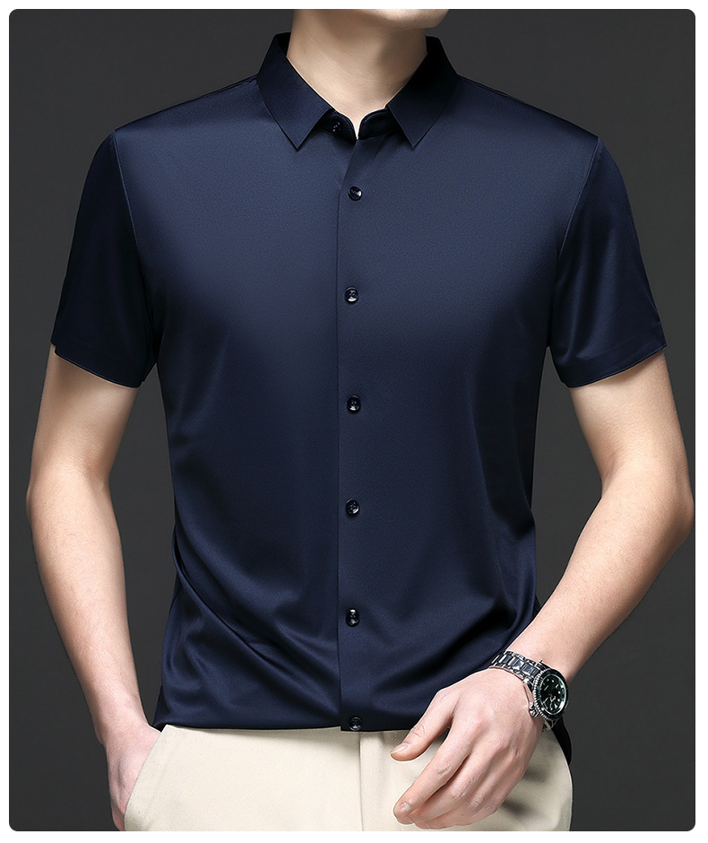 하이 엔드 여름 뽕나무 실크 남성 최고 짧은 소매 단색 원활한 셔츠 비즈니스 전문 원피스 셔츠 공장 직접 판매스토어 가기