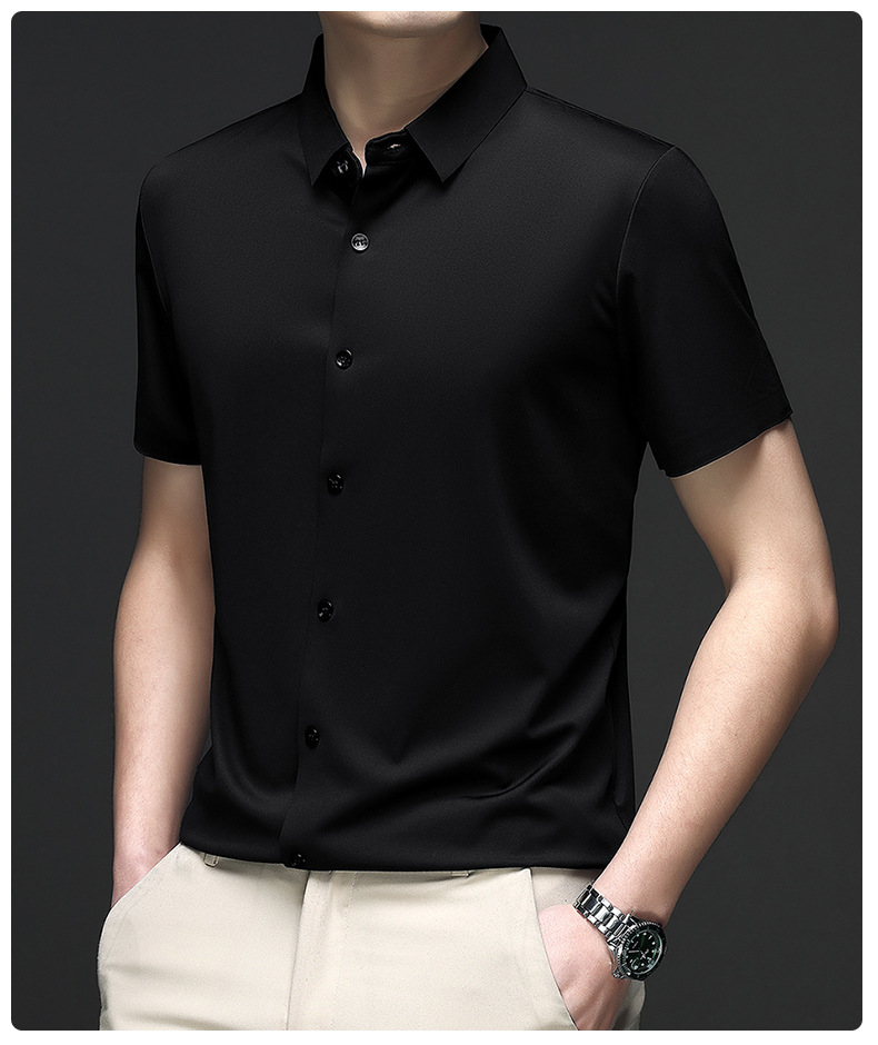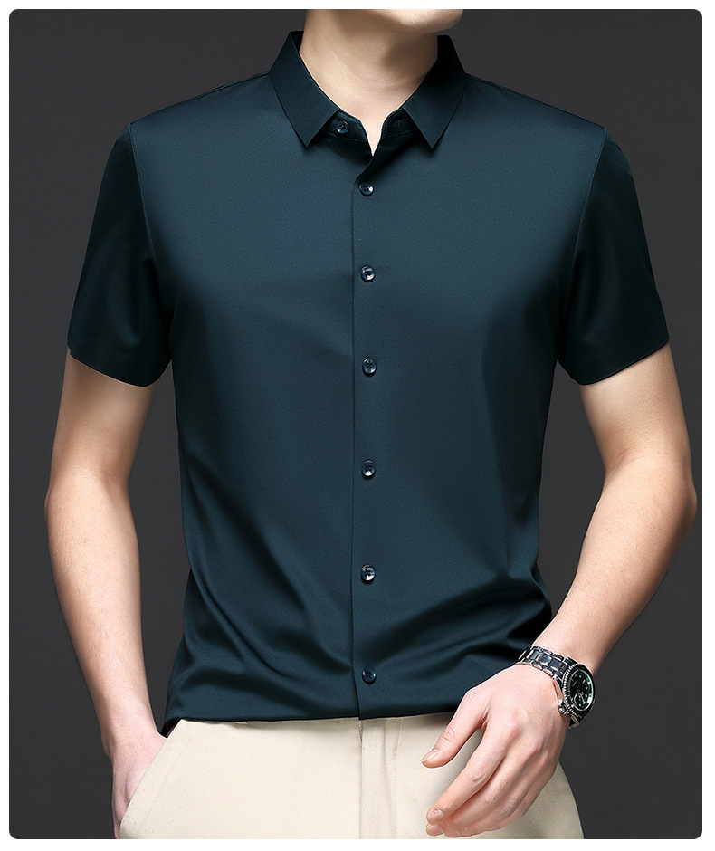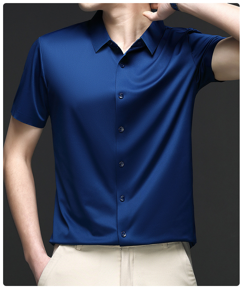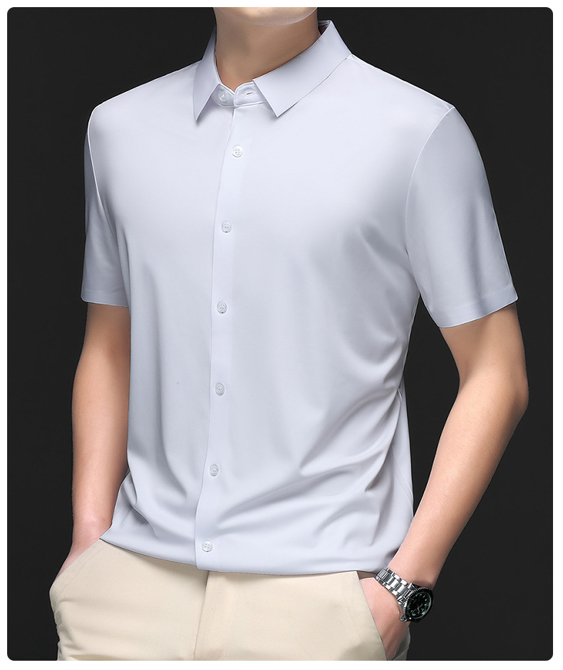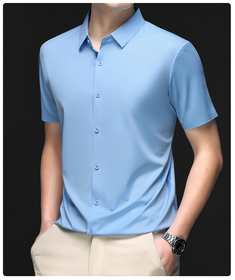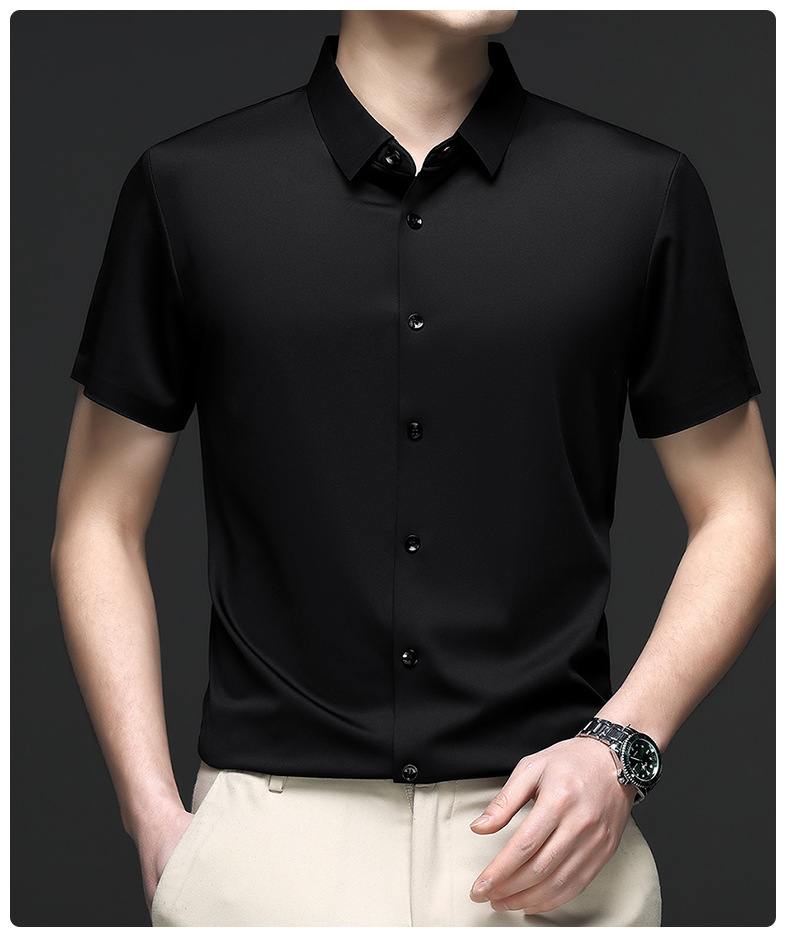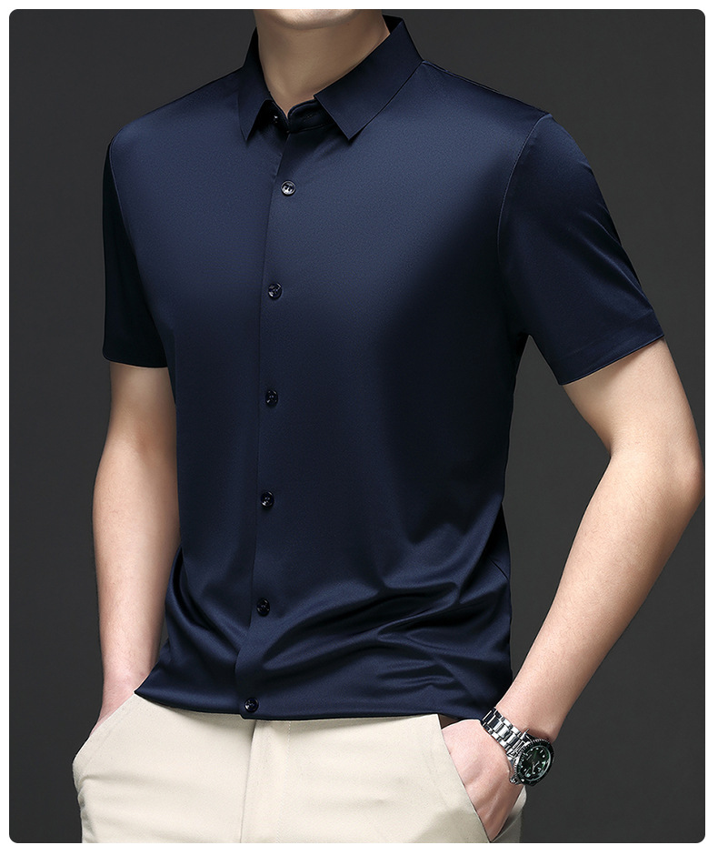 하이 엔드 여름 뽕나무 실크 남성 최고 짧은 소매 단색 원활한 셔츠 비즈니스 전문 원피스 셔츠 공장 직접 판매스토어 가기
