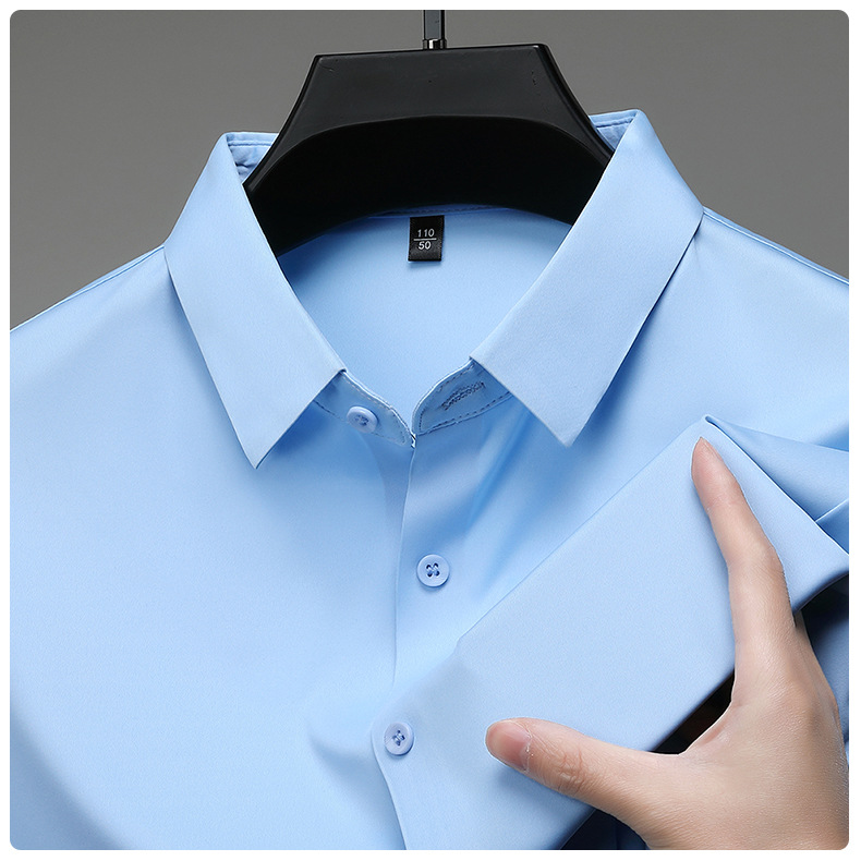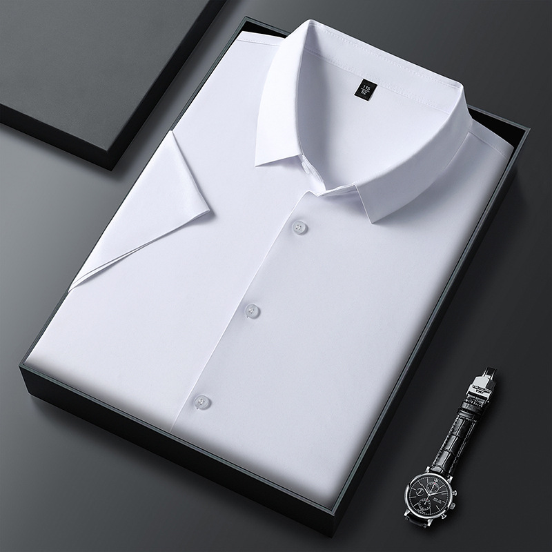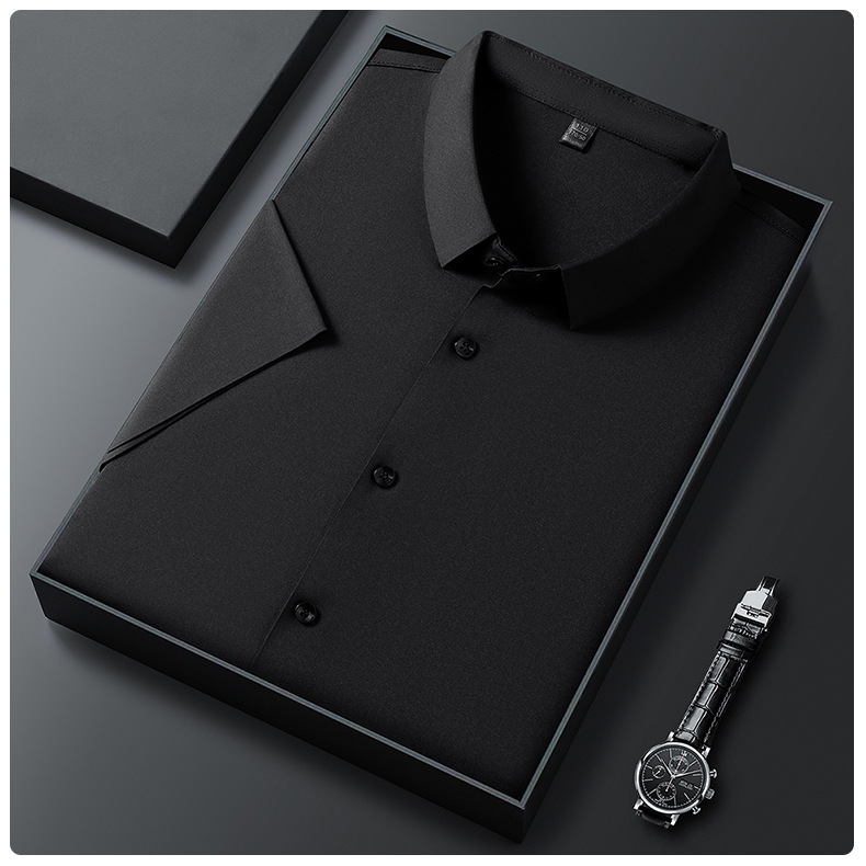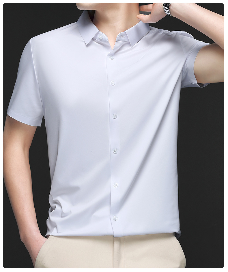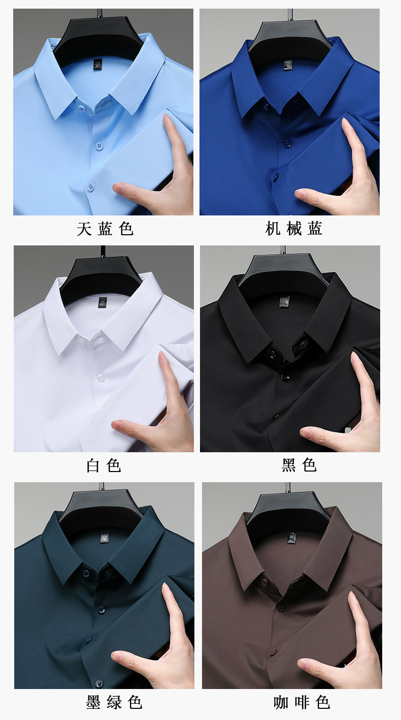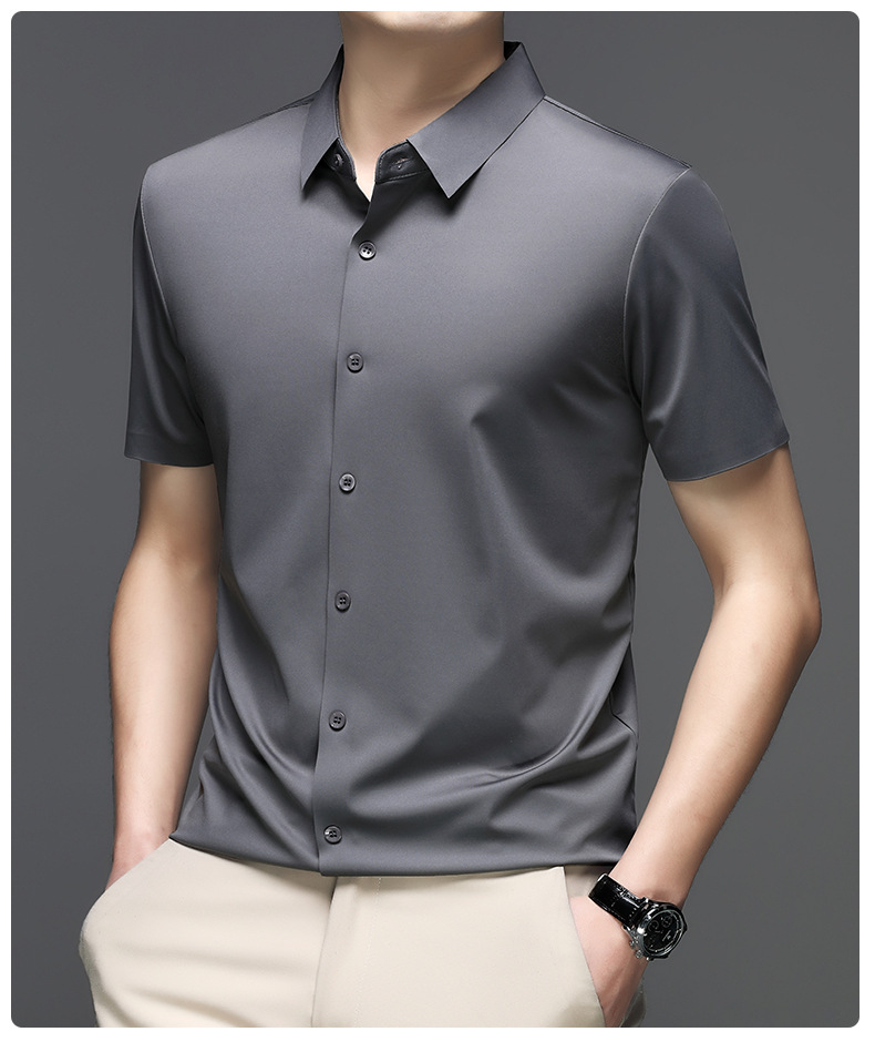 하이 엔드 여름 뽕나무 실크 남성 최고 짧은 소매 단색 원활한 셔츠 비즈니스 전문 원피스 셔츠 공장 직접 판매스토어 가기