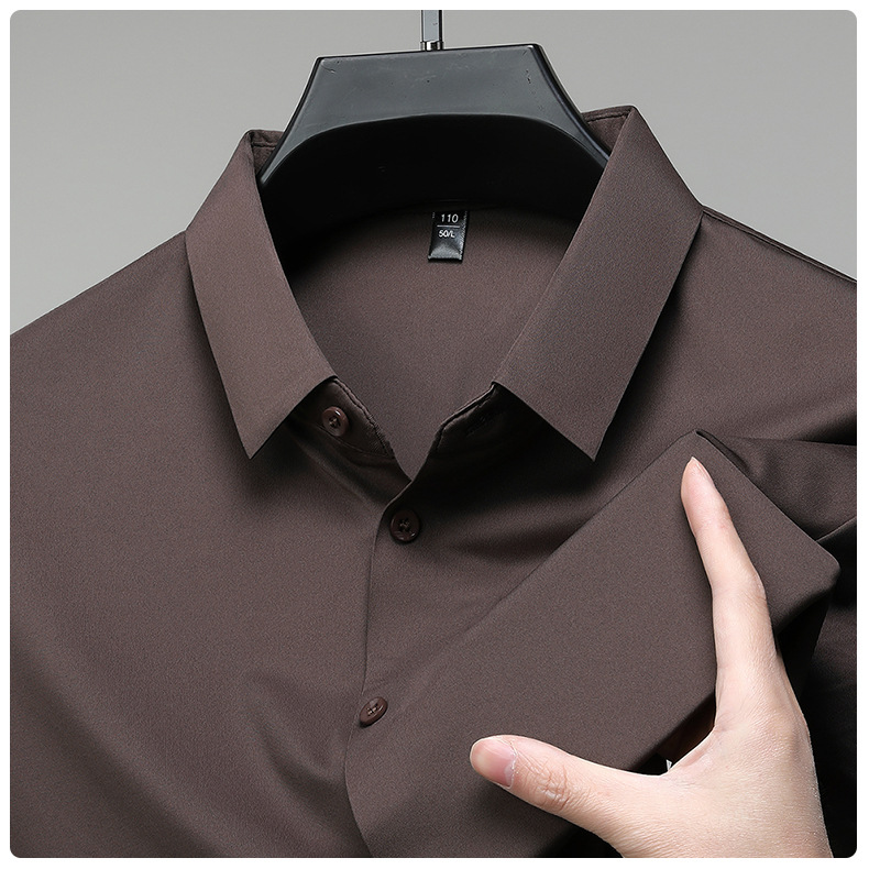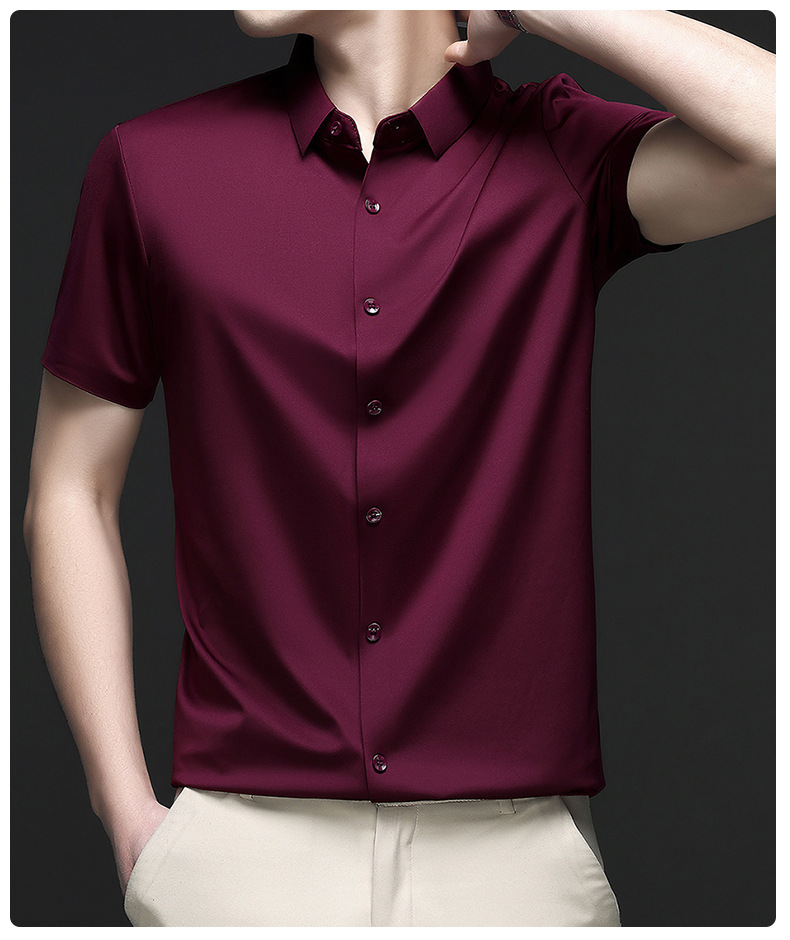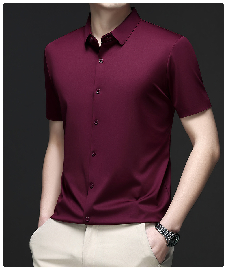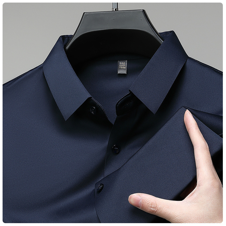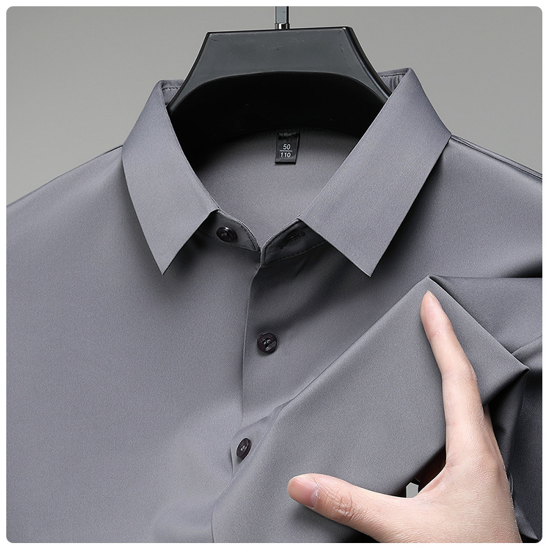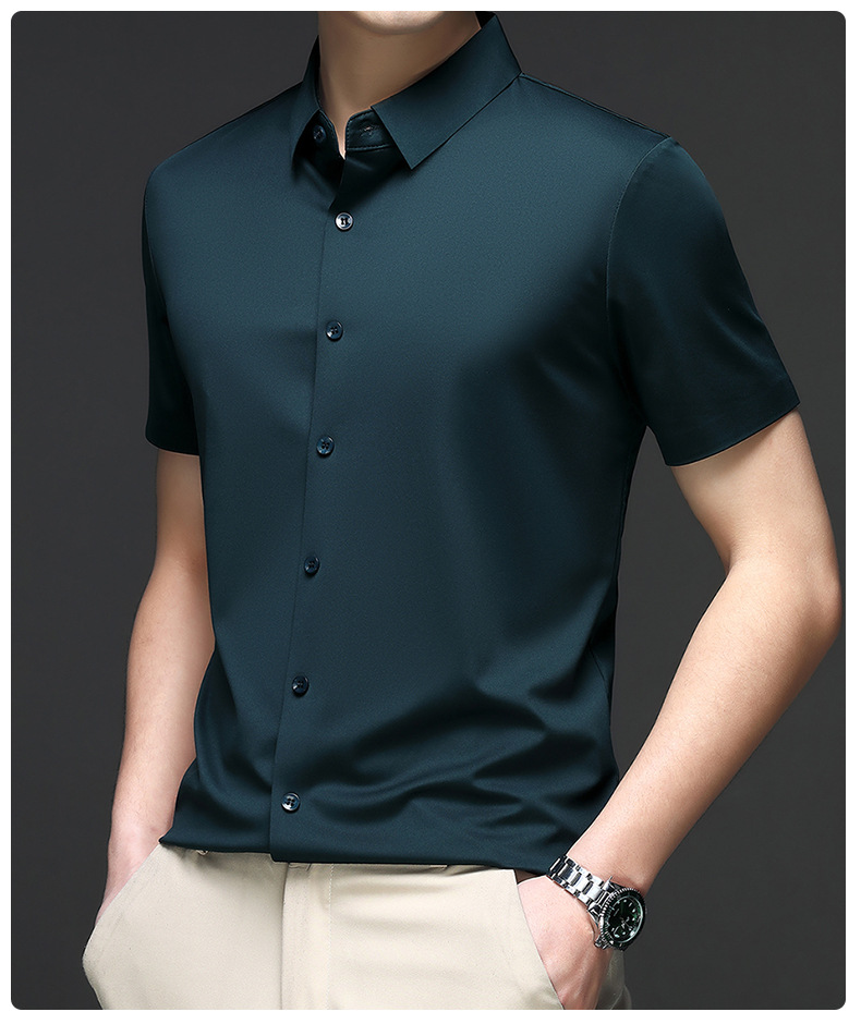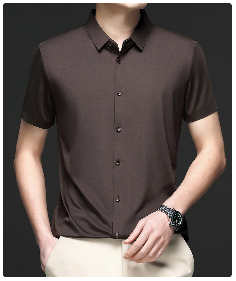 하이 엔드 여름 뽕나무 실크 남성 최고 짧은 소매 단색 원활한 셔츠 비즈니스 전문 원피스 셔츠 공장 직접 판매