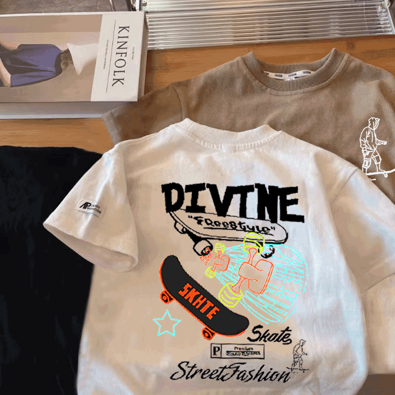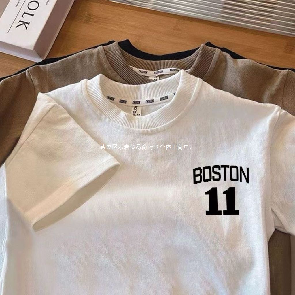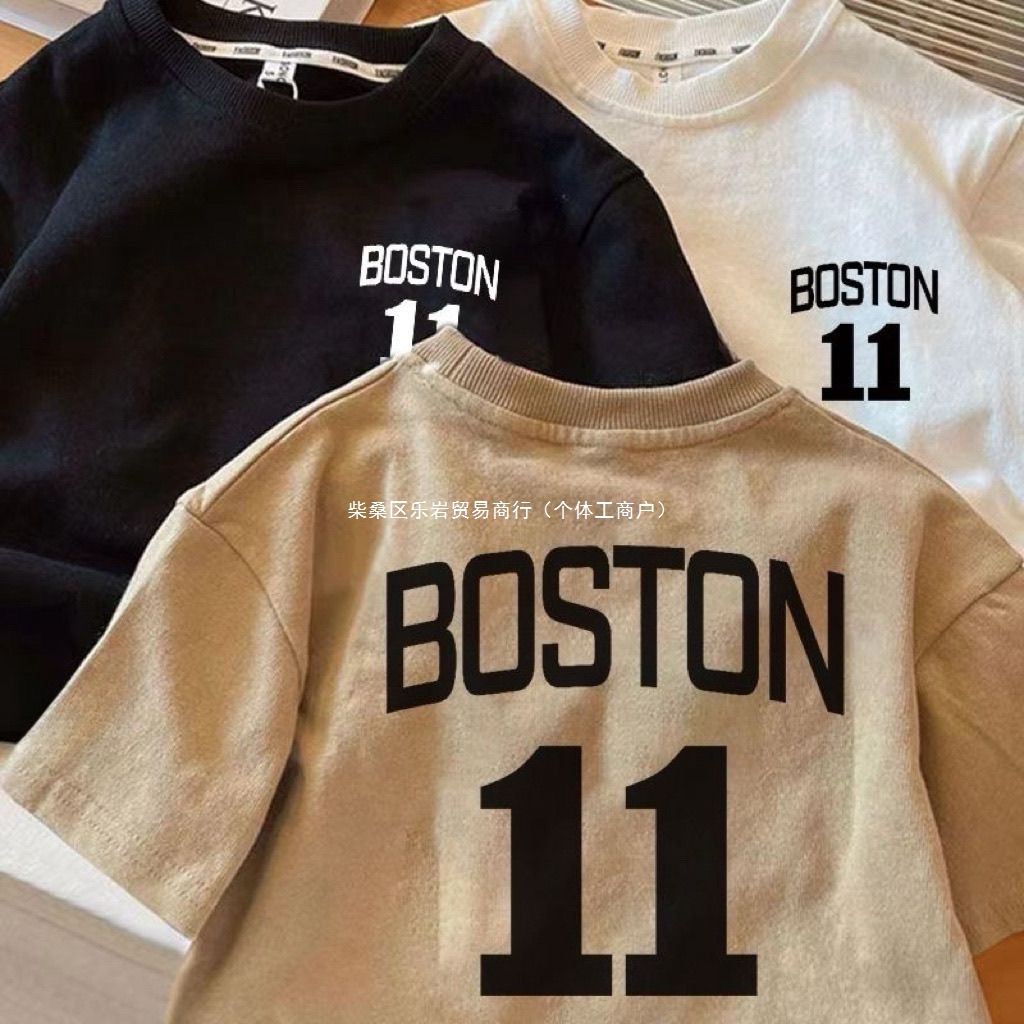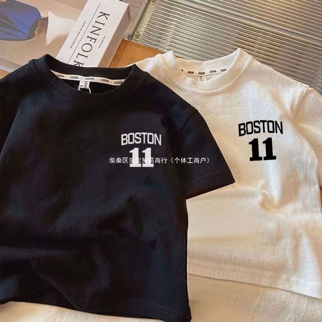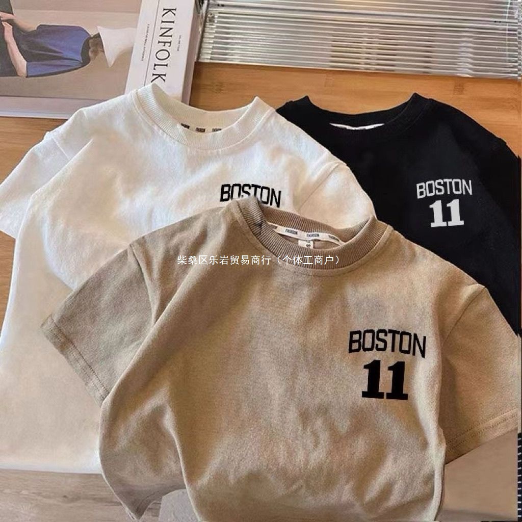 보이즈 코튼 반팔 티셔츠 편지 인쇄 느슨한 멋진 패션 캐주얼 틈새 디자인 감각 도매 한국어 버전스토어 가기