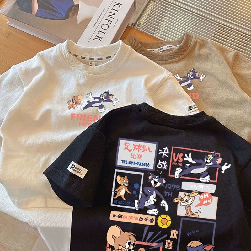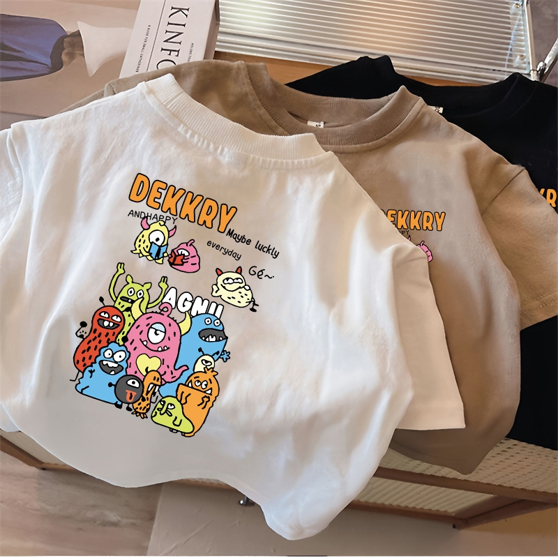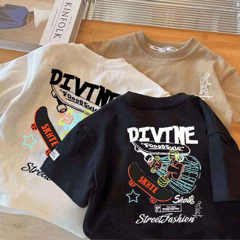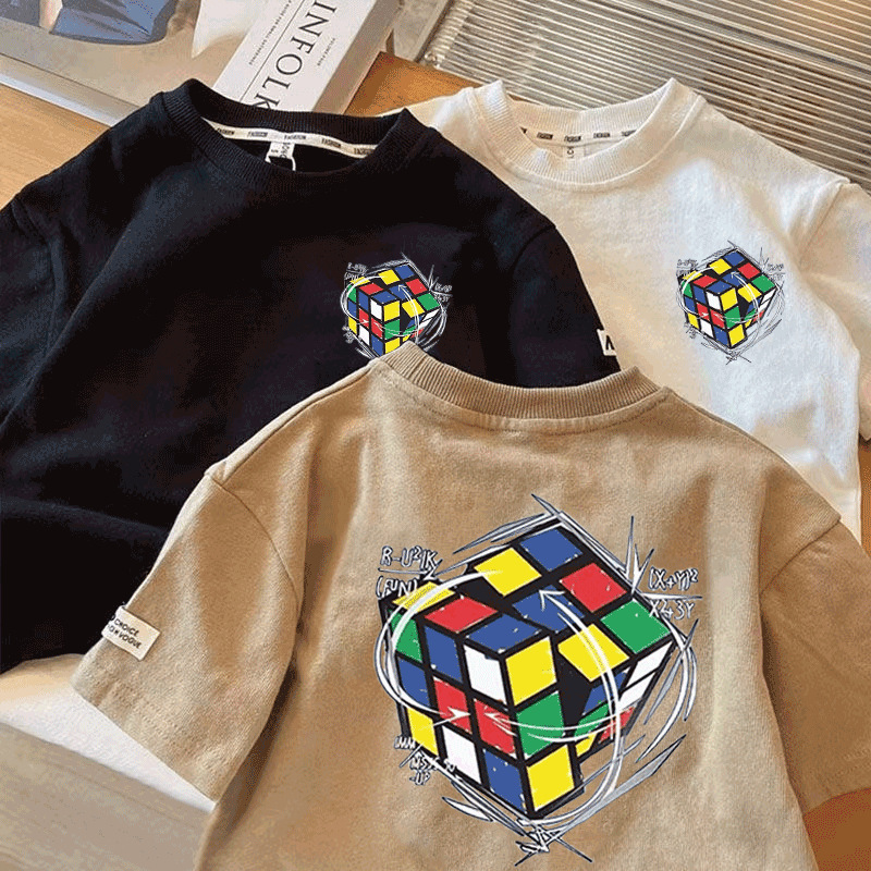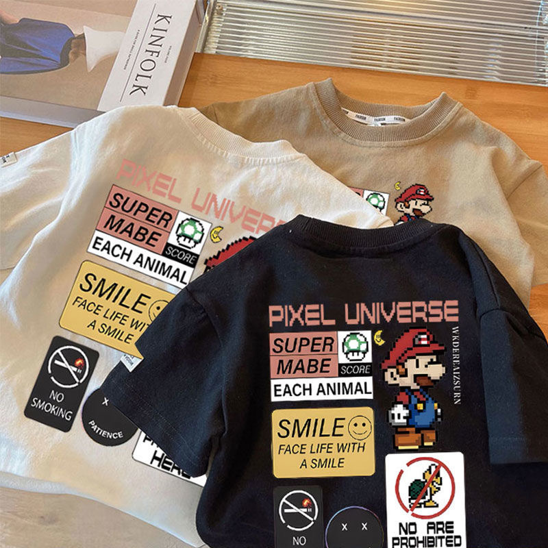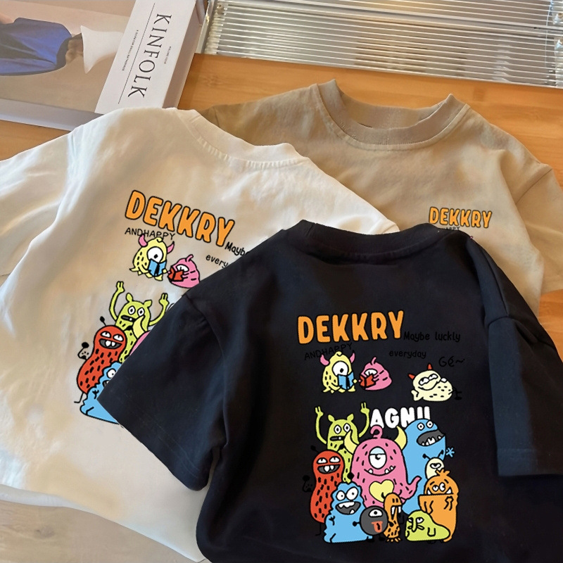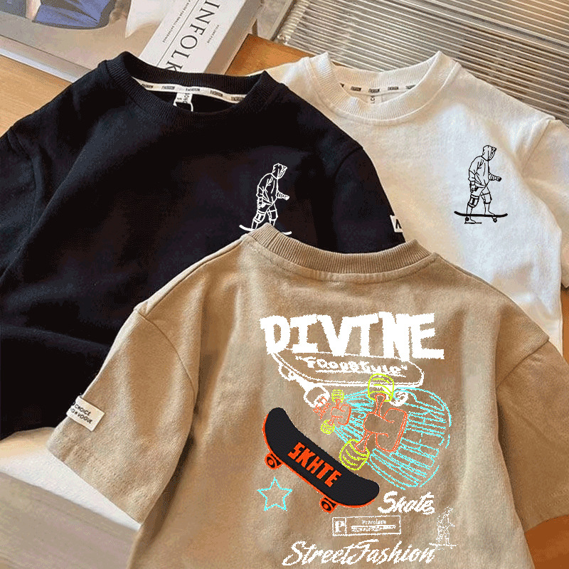 보이즈 코튼 반팔 티셔츠 편지 인쇄 느슨한 멋진 패션 캐주얼 틈새 디자인 감각 도매 한국어 버전스토어 가기