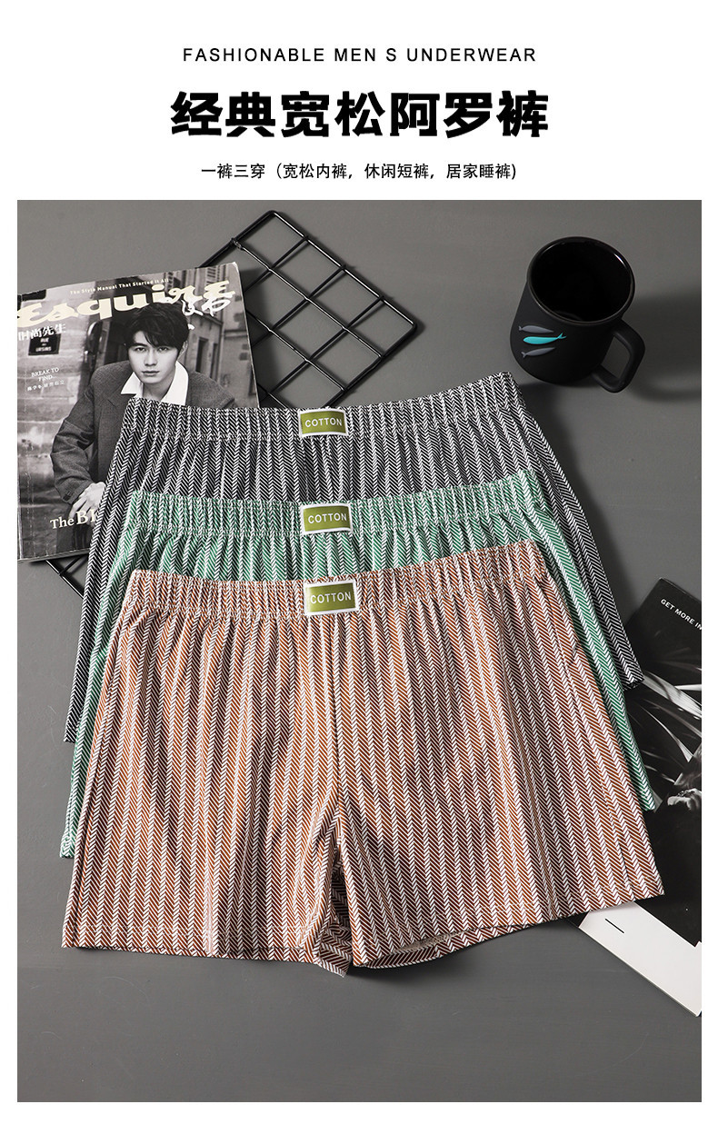 코튼 남자 알로 바지 줄무늬 복서 속옷 느슨한 홈 속옷 플러스 사이즈 남성 복서 속옷 여름