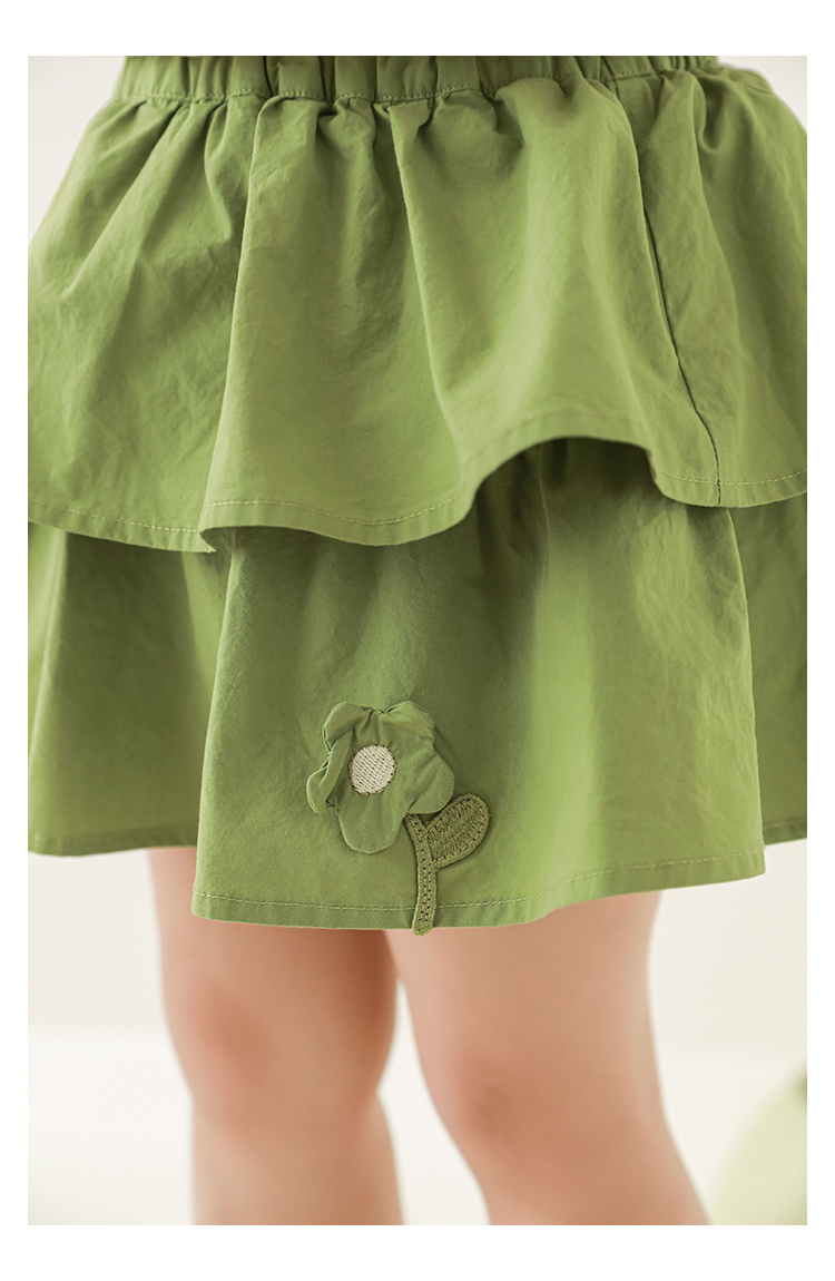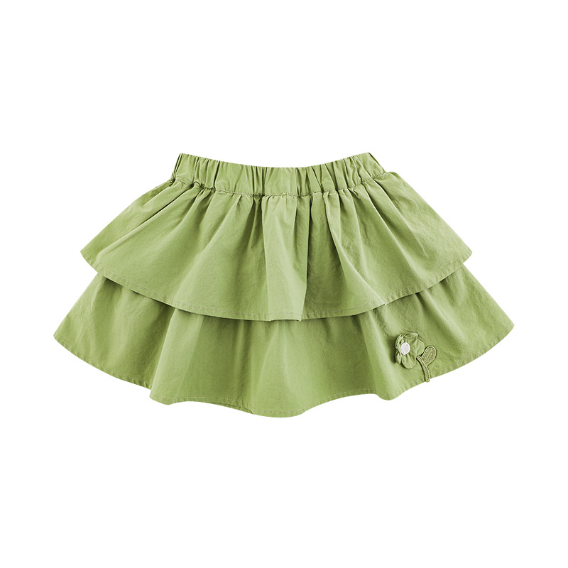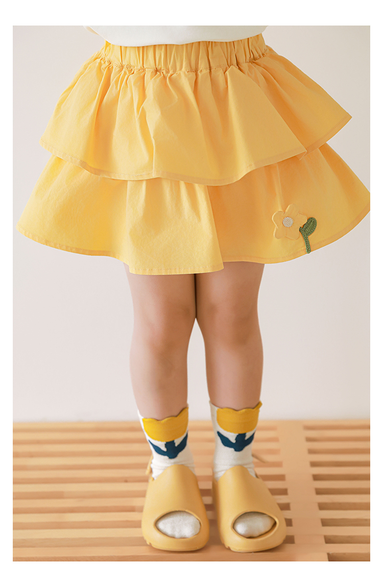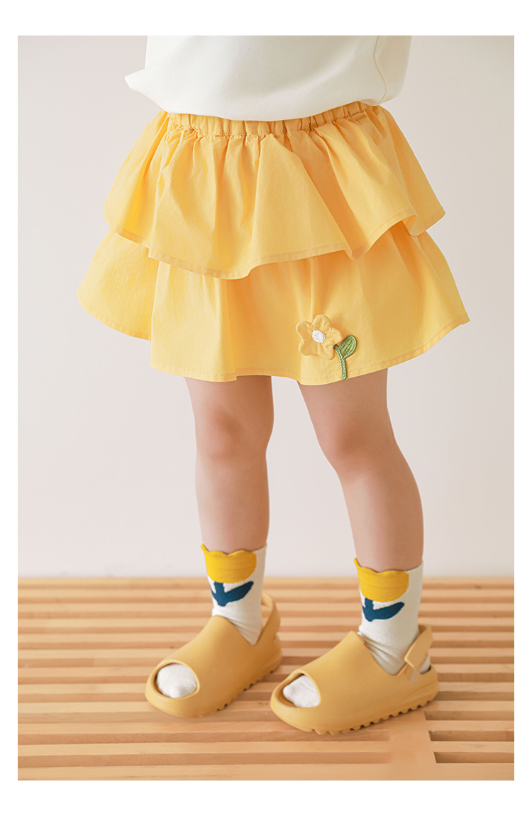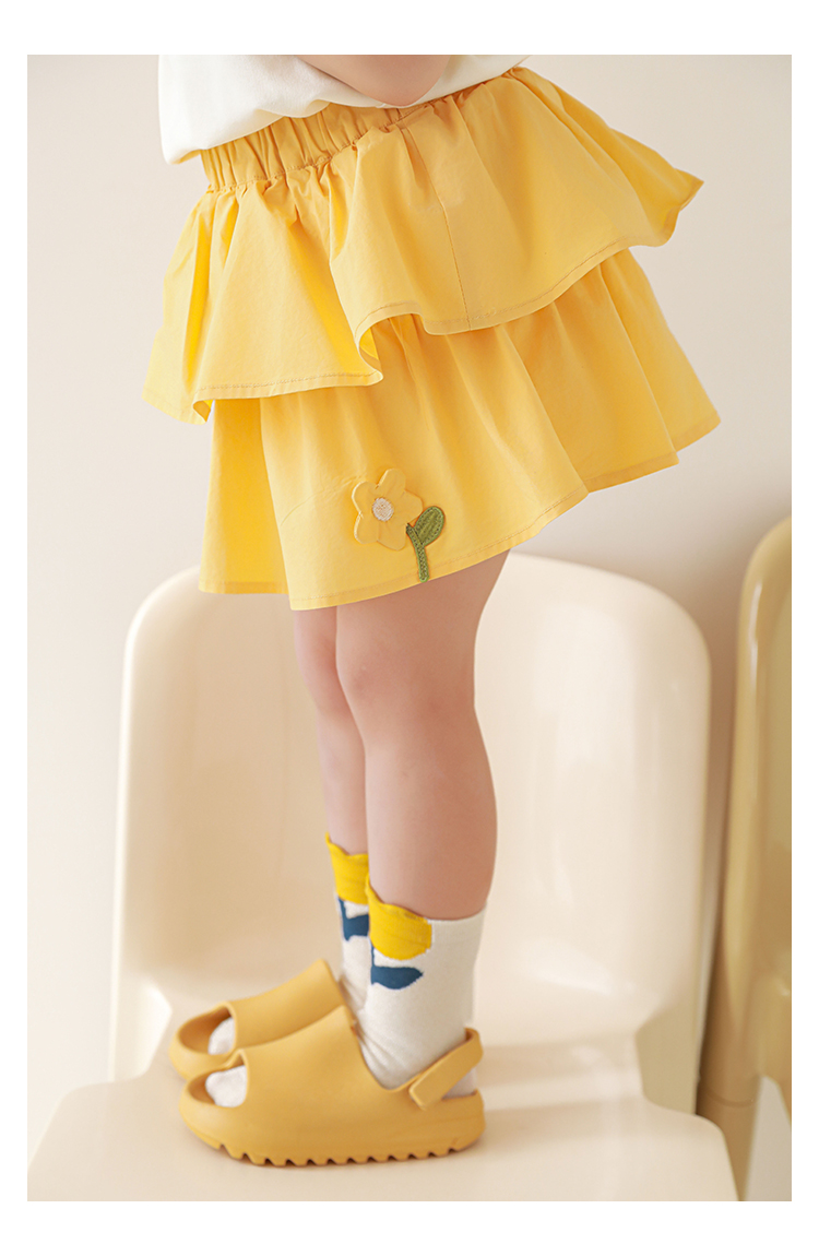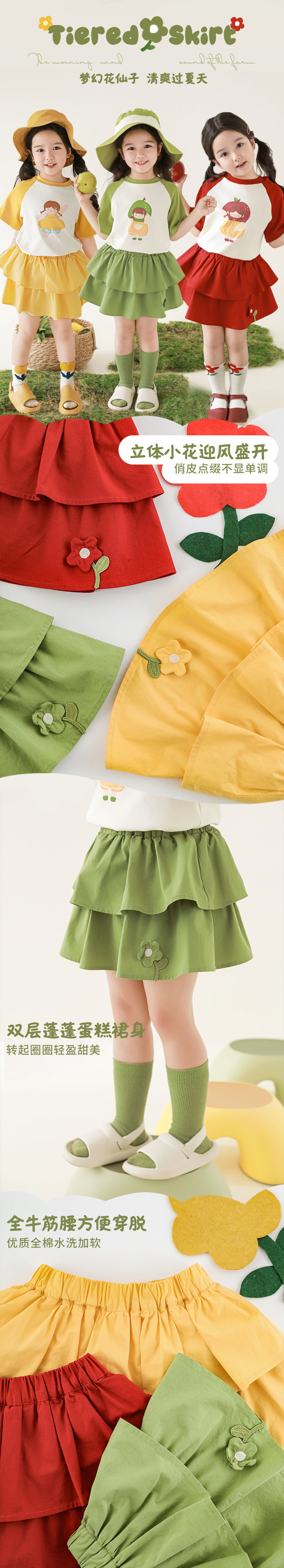 우리부이 여아용 이중 레이어 퍼프 케이크 스커트 여름용 달콤하고 귀여운 꽃 요정 자수 라벨 팬티 스커트